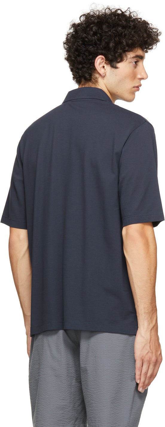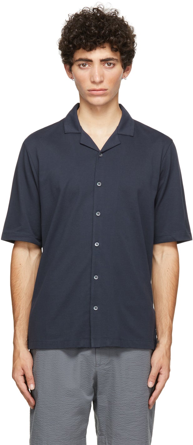 Sunspel Navy Pima Piqué Camp Collar Short Sleeve Shirt