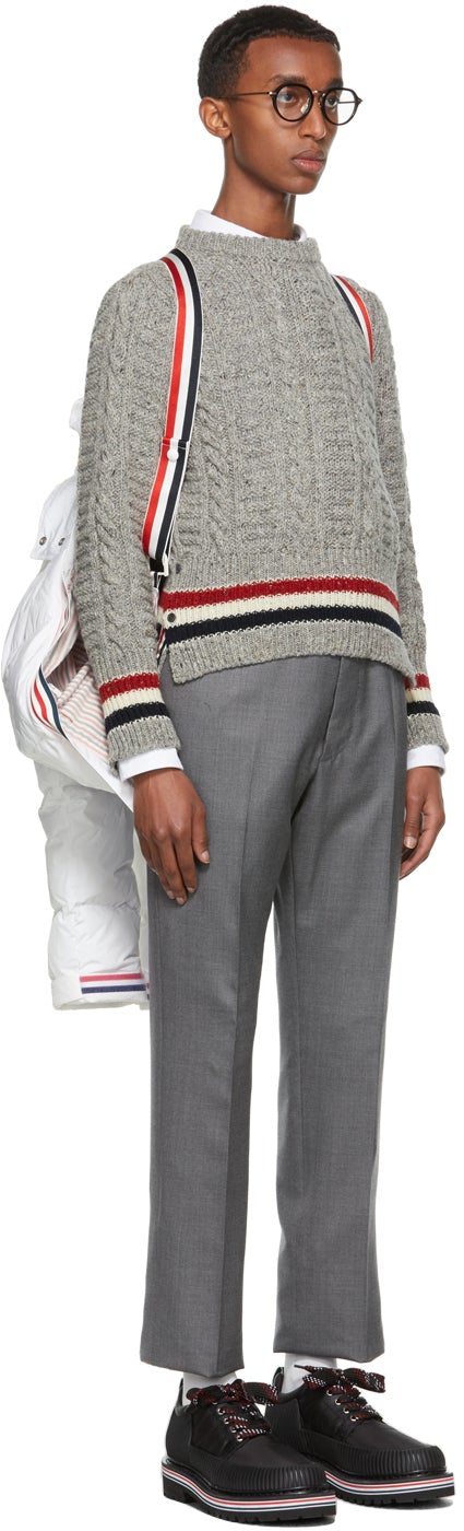 Thom Browne White Down Funnel Neck Double Zip Back Stripe Jacket