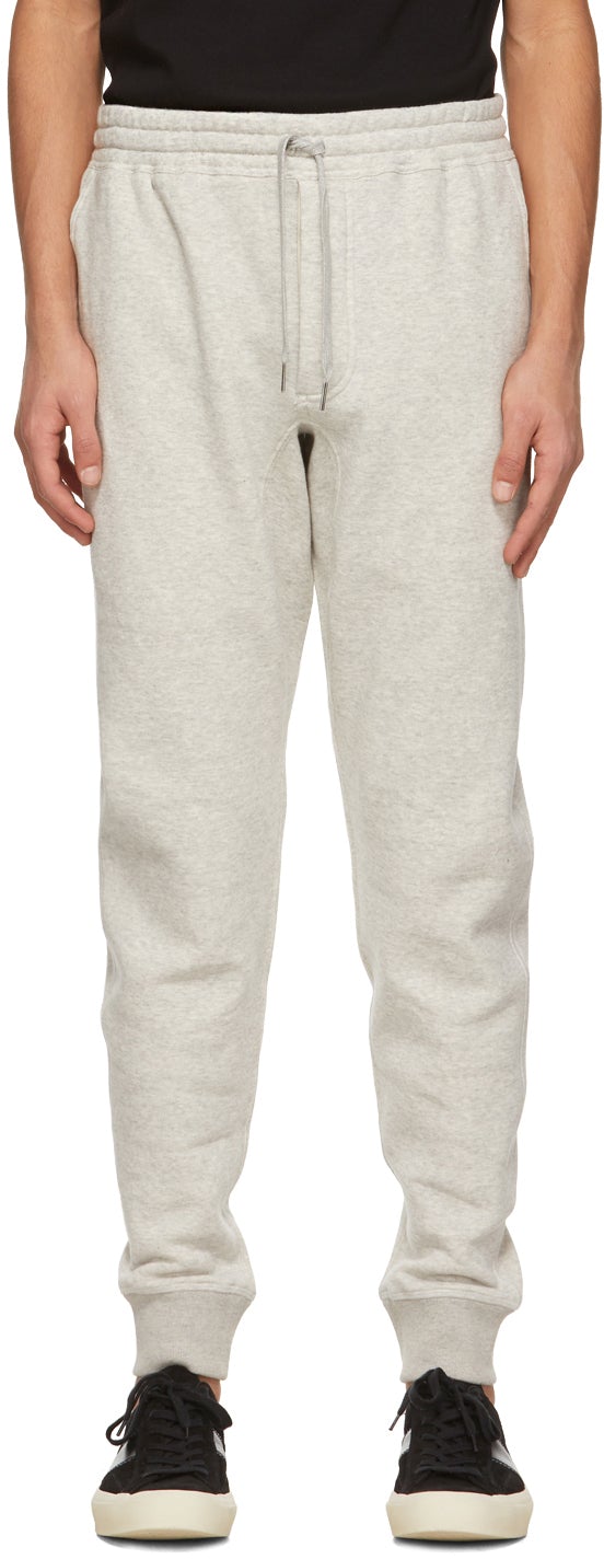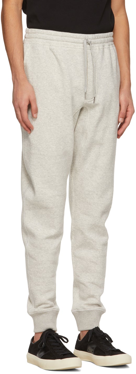Slim-fit garment-dyed cotton fleece lounge pants in heather grey. Low-rise. Four-pocket styling. Drawstring at elasticized waistband. Rib knit cuffs. Button-fly. Supplier color: Grey 100% cotton. Brand: TOM FORD