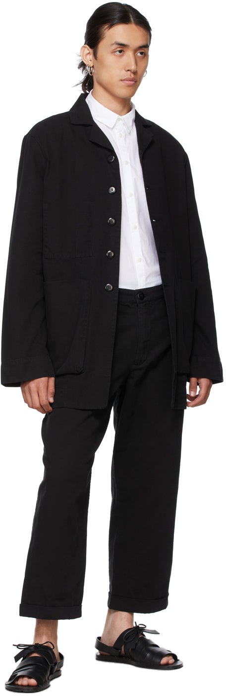 Wide-leg cotton canvas trousers in black. Mid-rise. Cropped leg. Three-pocket styling. Belt loops at waistband. Darts at back waist. Zip-fly. Tonal hardware. Supplier color: Flint 100% cotton. Brand: Toogood