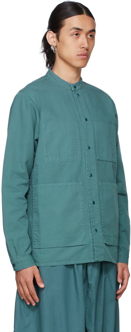 Long sleeve cotton canvas shirt in blue. Crewneck collar. Button closure at front. Patch pockets at chest and waist. Single-button barrel cuffs. Supplier color: Fog 100% cotton. Brand: Toogood