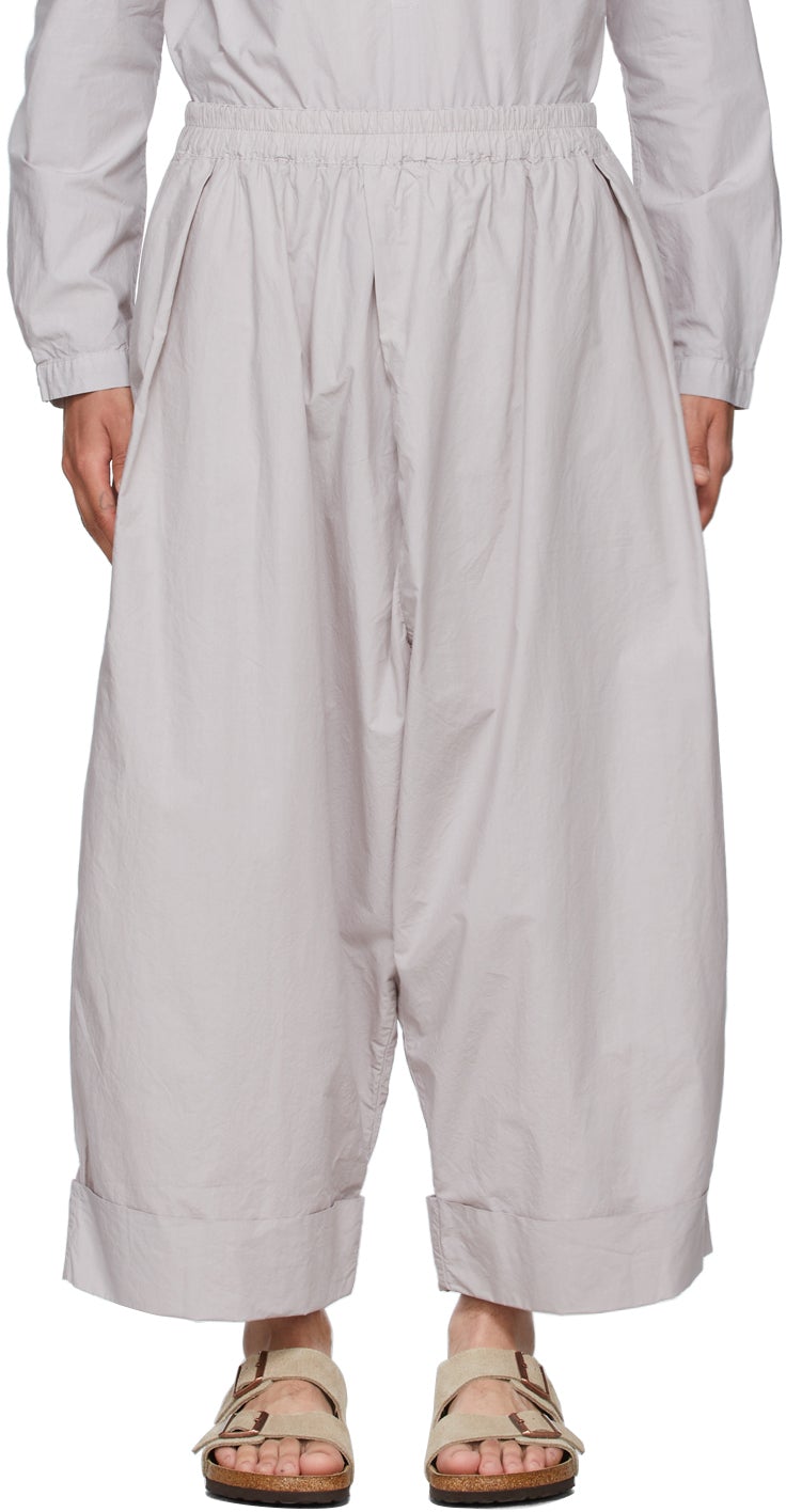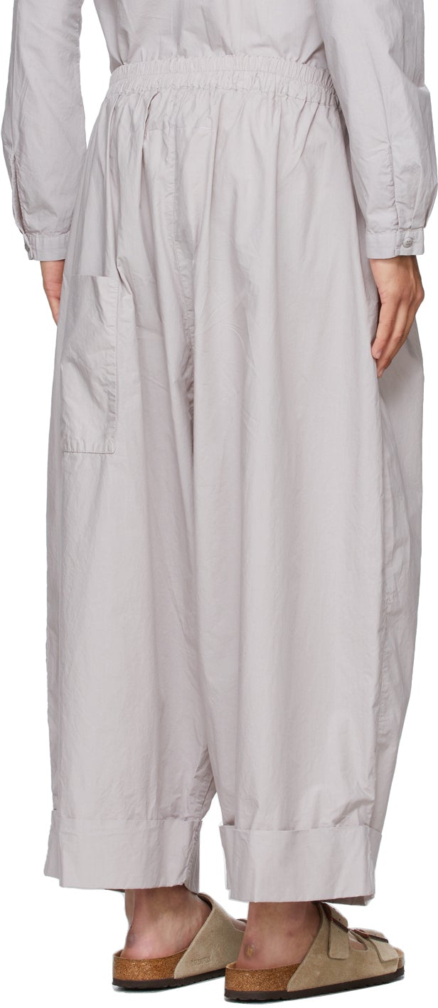 Relaxed-fit cotton poplin trousers in grey. Mid-rise. Cropped hem. Concealed drawstring at elasticized waistband. Rolled cuffs. Supplier color: Slate 100% cotton. Brand: Toogood