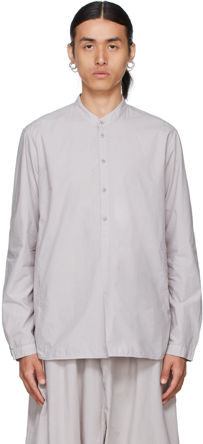 Long sleeve cotton poplin shirt in grey. Crewneck collar. Button closure at front. Single-button barrel cuffs. Shirttail hem. Supplier color: Slate 100% cotton. Brand: Toogood