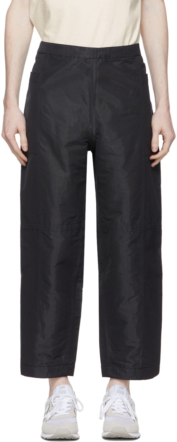 Reversible double-faced cotton and nylon-blend twill trousers in navy. Mid-rise. Two-pocket styling. Concealed drawstring at waistband. Reverse in navy cotton and nylon twill. Tonal webbing trim at seams. Mid-rise. Two-pocket styling. Drawstring at waistband. Supplier color: Navy 44% cotton, 44% polyester, 12% nylon. Brand: ts(s)