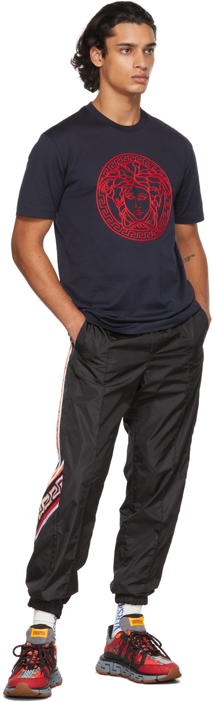 Versace Navy Embroidered Medusa T-Shirt