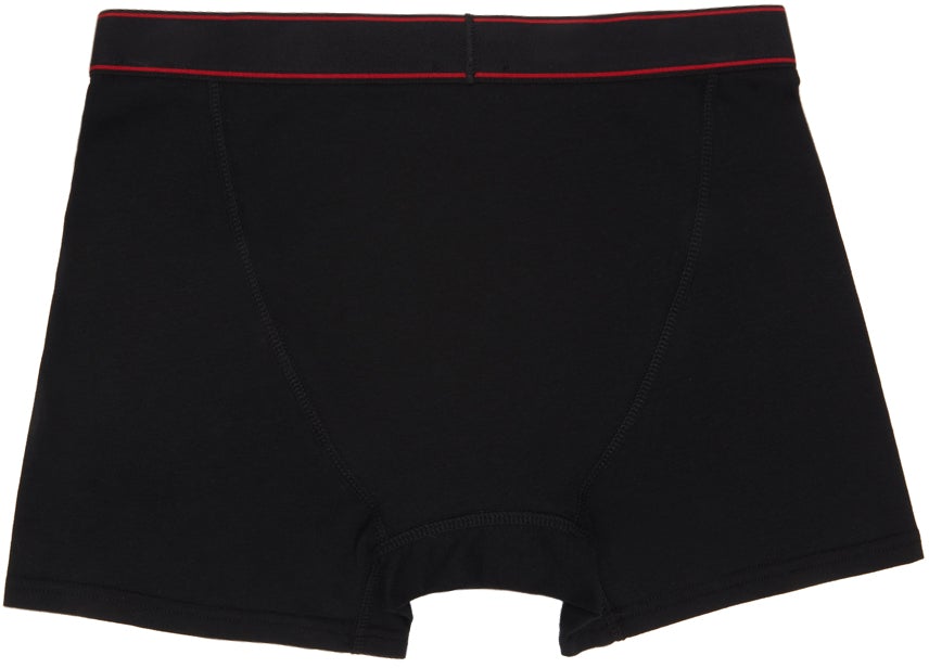 Stretch cotton jersey boxers in black. Mid-rise. Logo knit in white at red and black elasticized waistband. Supplier color: Black 90% cotton, 10% elastane. Brand: VETEMENTS
