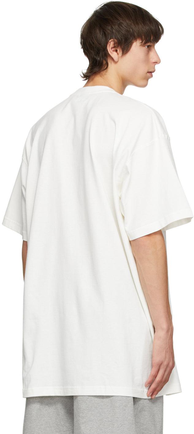 Short sleeve cotton jersey T-shirt in white. Rib knit crewneck collar. Logo embroidered in black and multicolor at front. Tonal logo embroidered at back collar. Supplier color: White 100% cotton. Brand: VETEMENTS