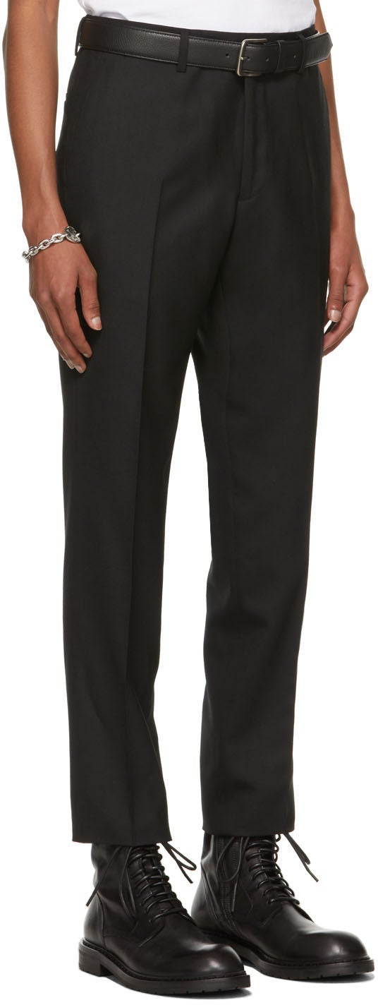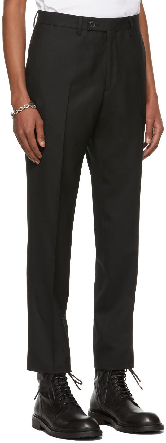 Straight-leg virgin wool twill trousers in black. Mid-rise. Four-pocket styling. Belt loops at waistband. Central crease at legs. Unfinished hem. Zip-fly. Antiqued silver-tone hardware. Supplier color: Black 100% virgin wool. Brand: Vivienne Westwood
