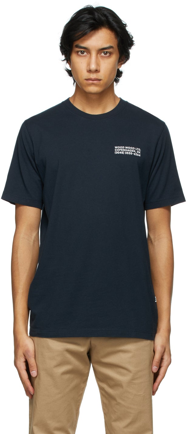 Wood Wood Navy Info Sami T-Shirt