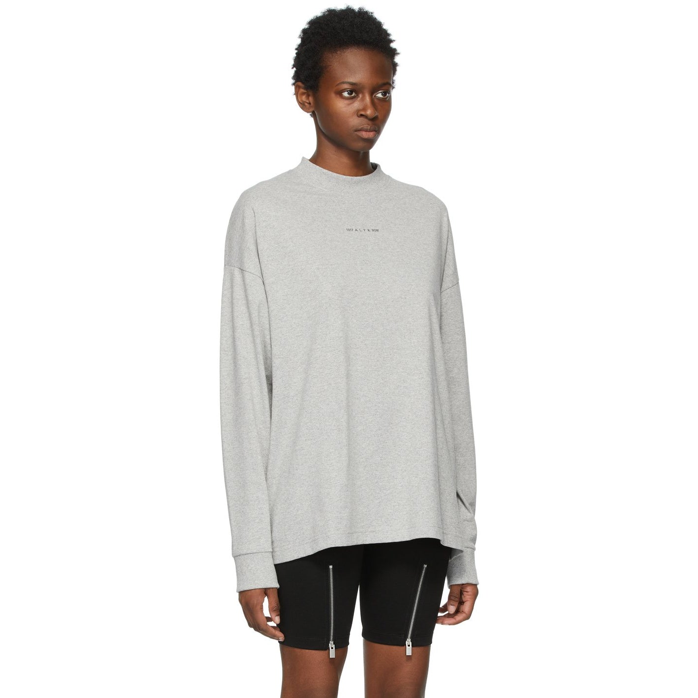 Long sleeve cotton-blend jersey T-shirt in grey. Rib knit crewneck collar and cuffs. Logo printed in black at chest. Supplier color: Grey 50% cotton, 50% polyester. Brand: 1017 ALYX 9SM