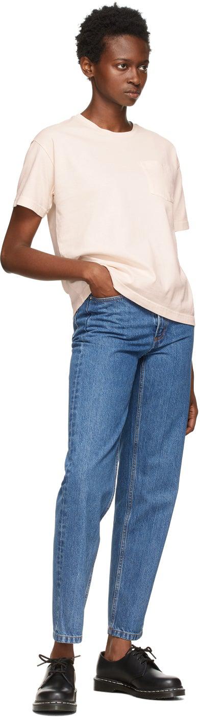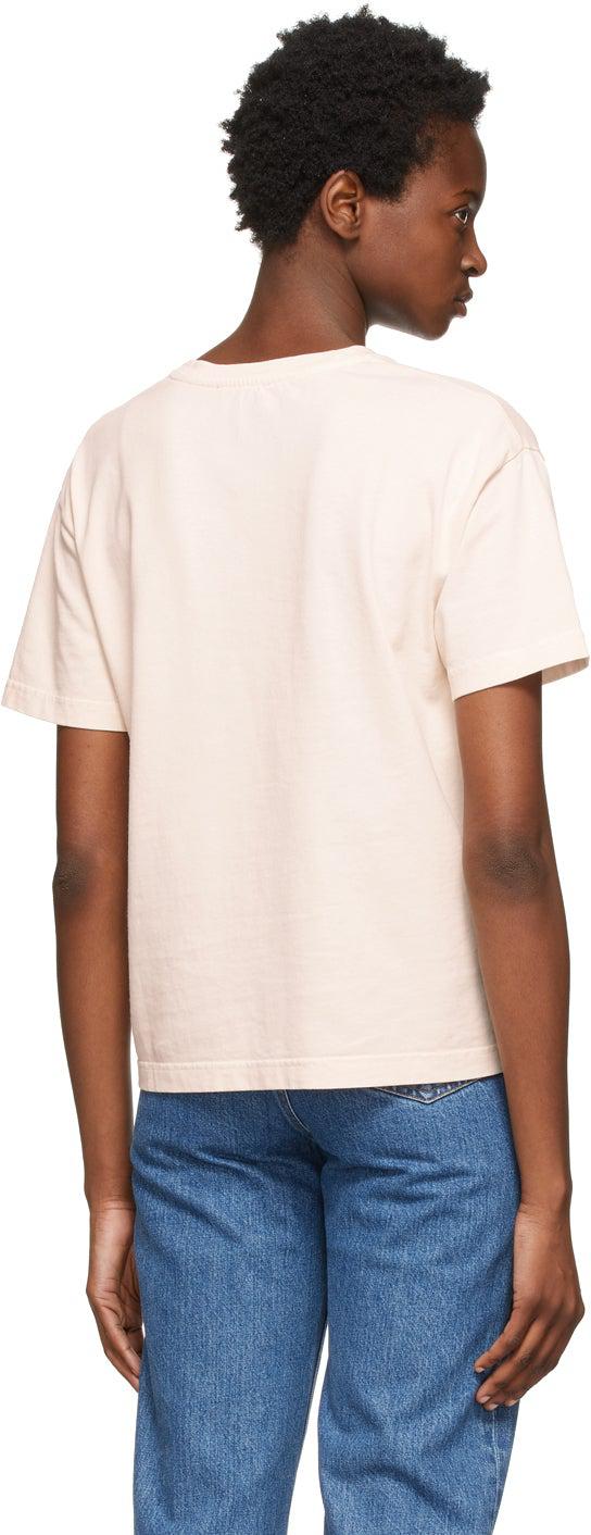 Short sleeve stonewashed organic cotton jersey T-shirt in pink. Rib knit crewneck collar. Patch pocket featuring tonal embroidered logo at chest. Each item is unique. Please note that coloration may vary. Supplier color: Peach 100% organic cotton. Brand: A.P.C.