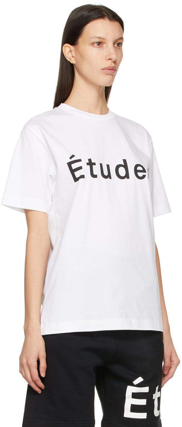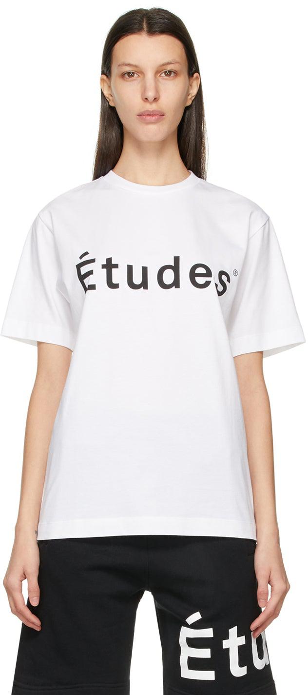 Short sleeve organic cotton jersey T-shirt in white. Rib knit crewneck collar. Bonded logo in black at chest. Supplier color: White 100% organic cotton. Brand: Études