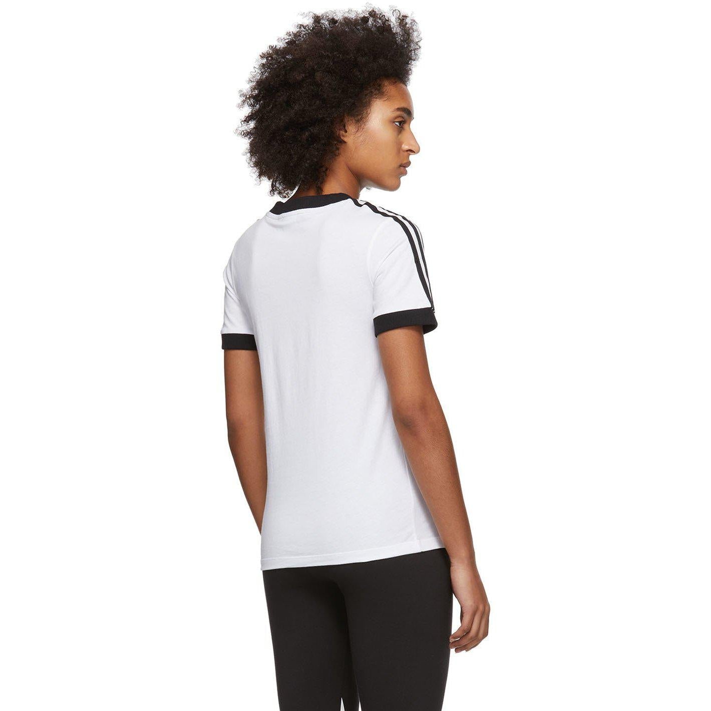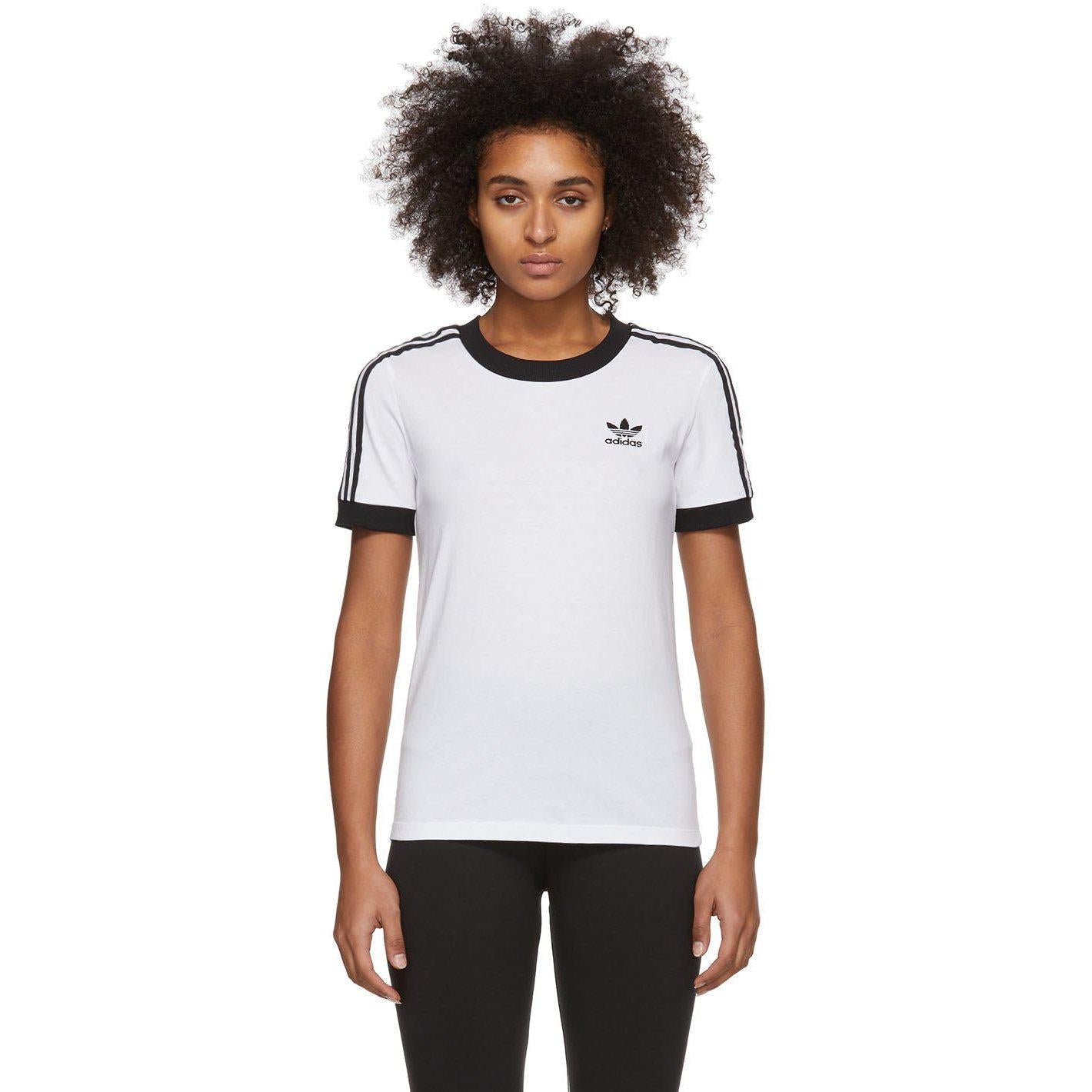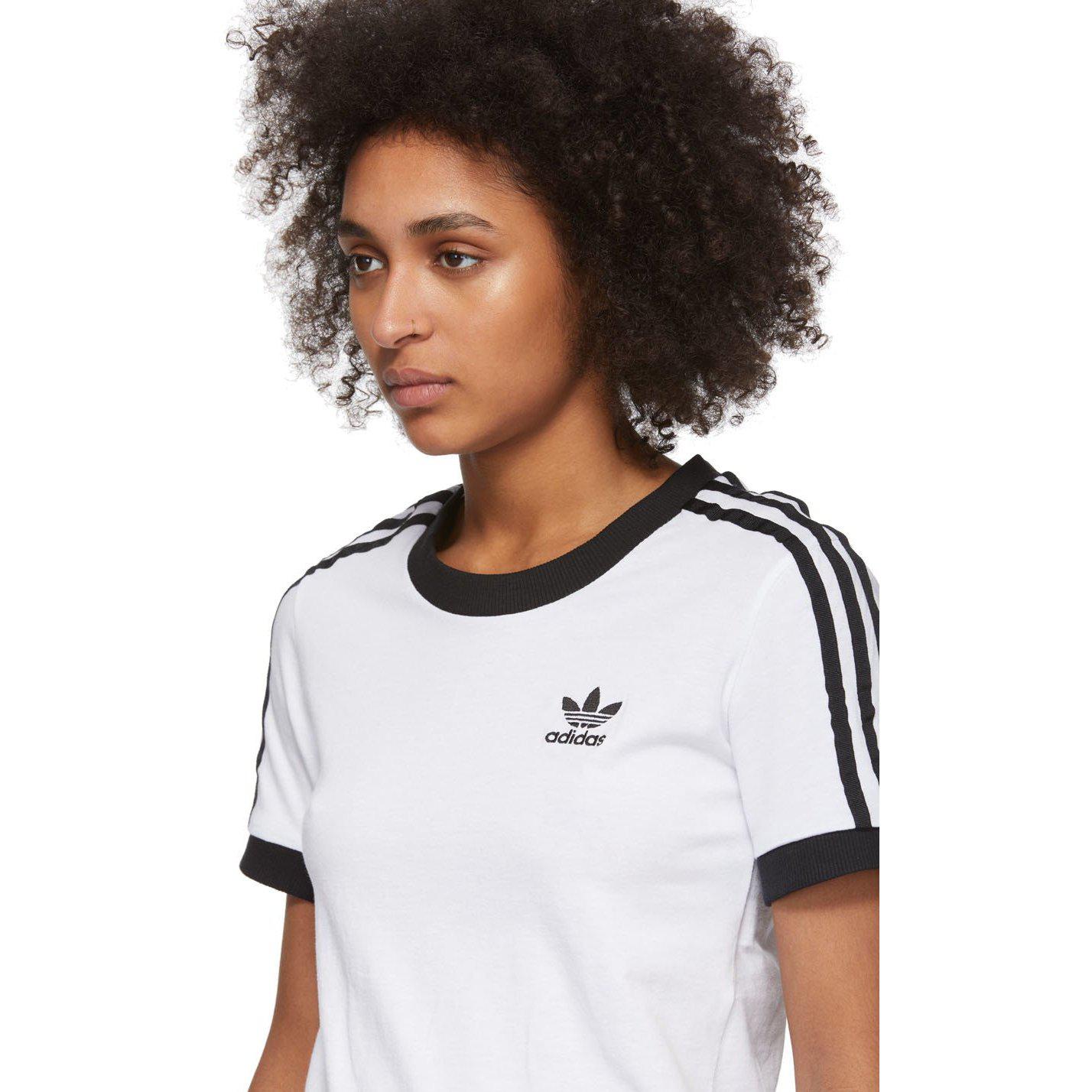Short sleeve cotton jersey t-shirt in white. Elasticized rib knit crewneck collar and cuffs in black. Logo embroidered in black at chest. Signature stripes in black at sleeves. Supplier color: White Body: 100% cotton. Trim: 95% cotton, 5% spandex. Brand: adidas Originals