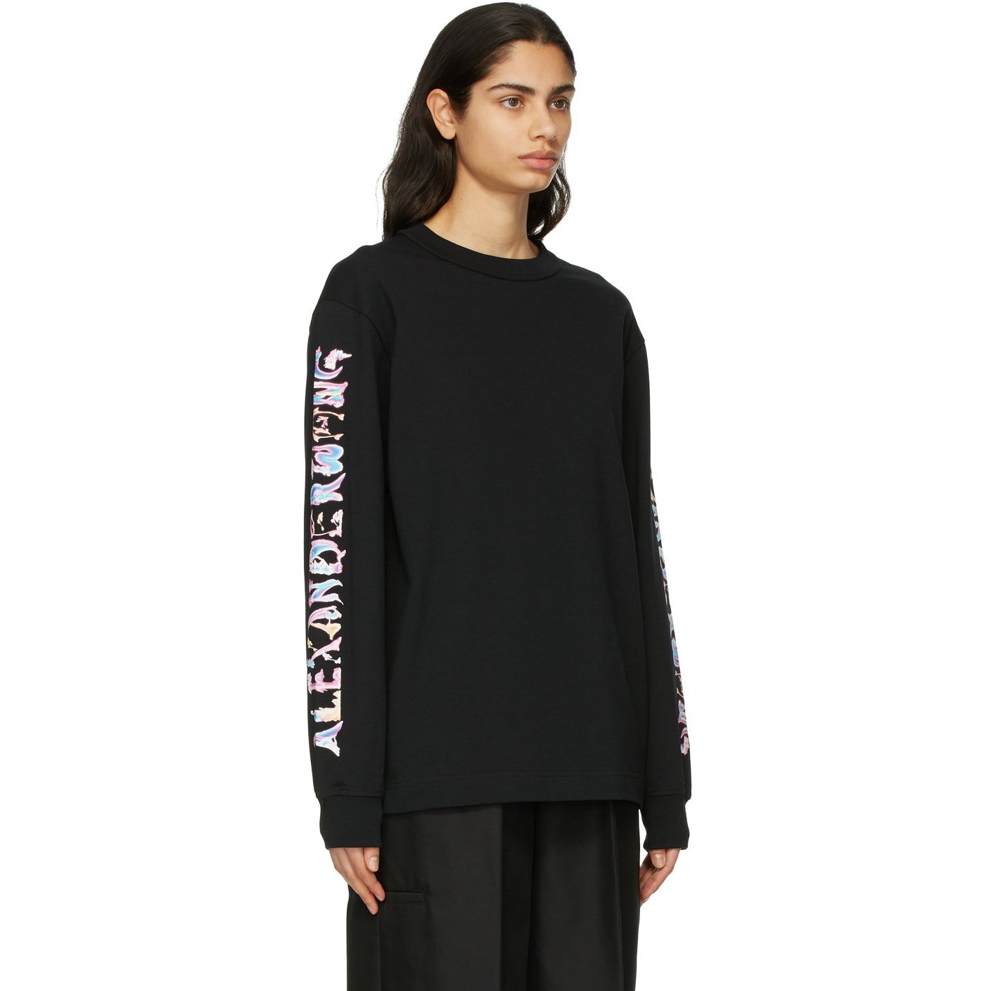 Long sleeve cotton jersey T-shirt in black. Rib knit crewneck collar and cuffs. Logo printed in multicolor at sleeves. Supplier color: Black 100% cotton. Brand: Alexander Wang