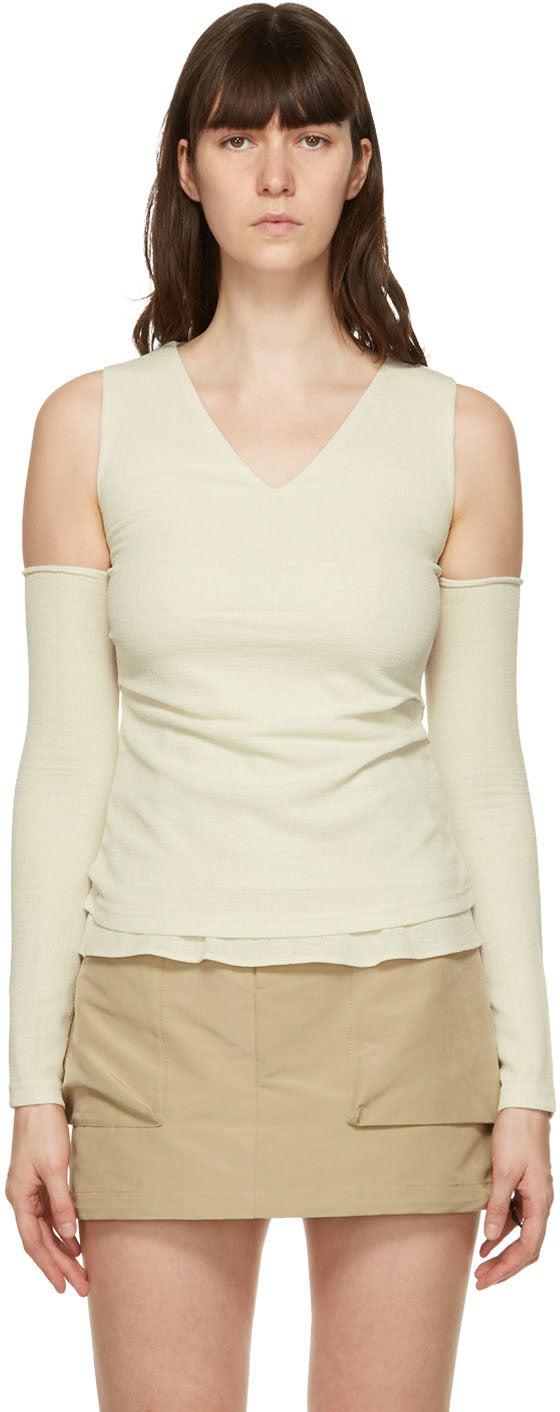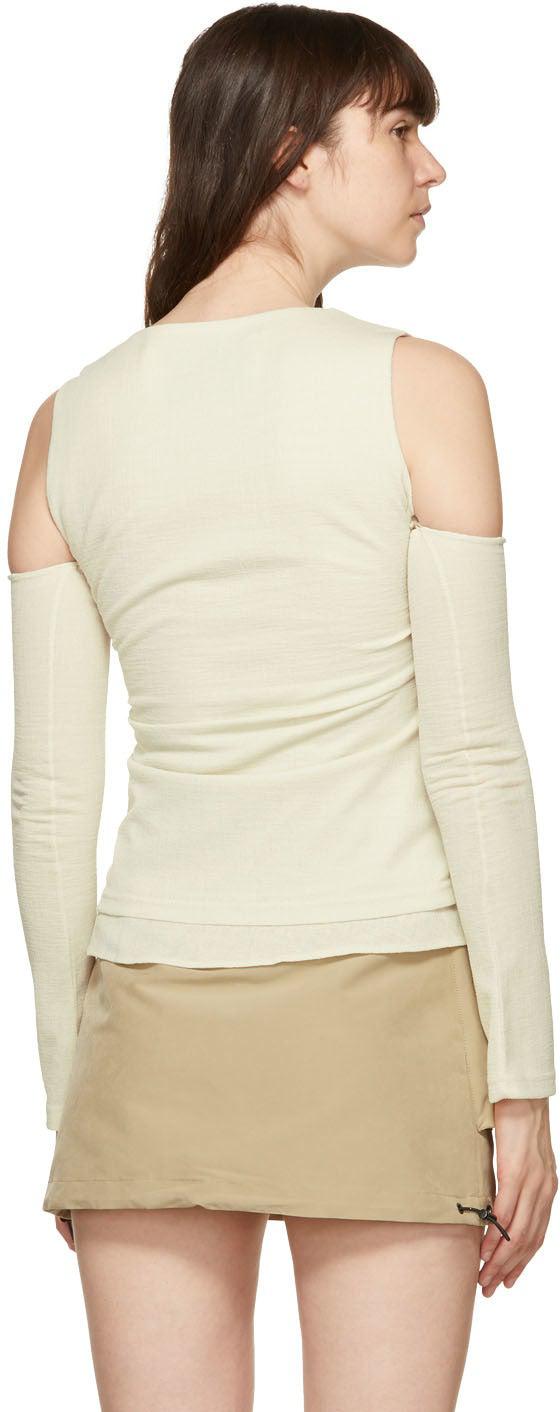 Andersson Bell Off-White Cut-Off Drape Long Sleeve T-Shirt