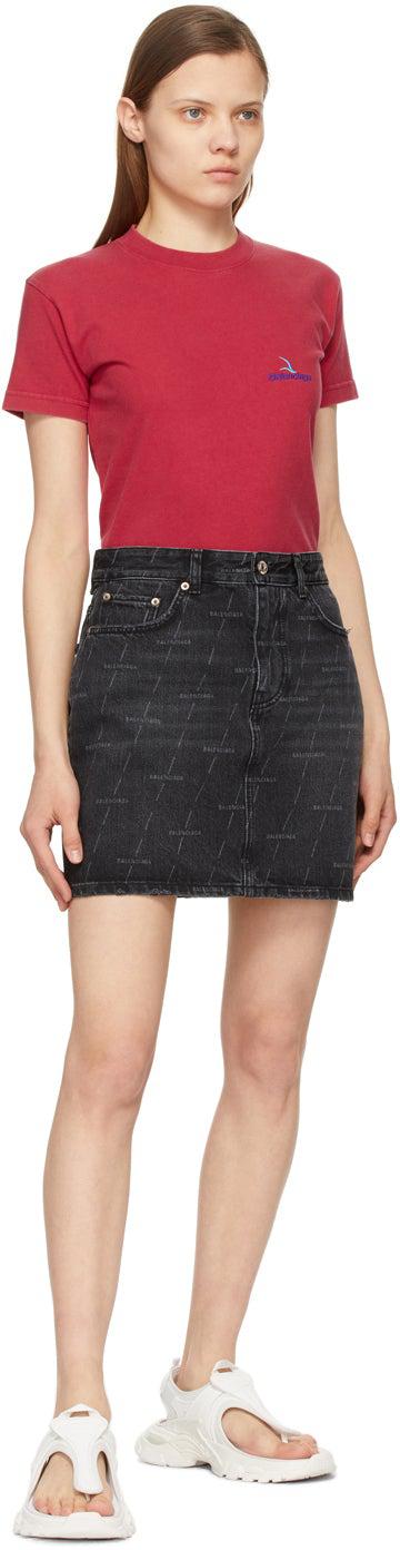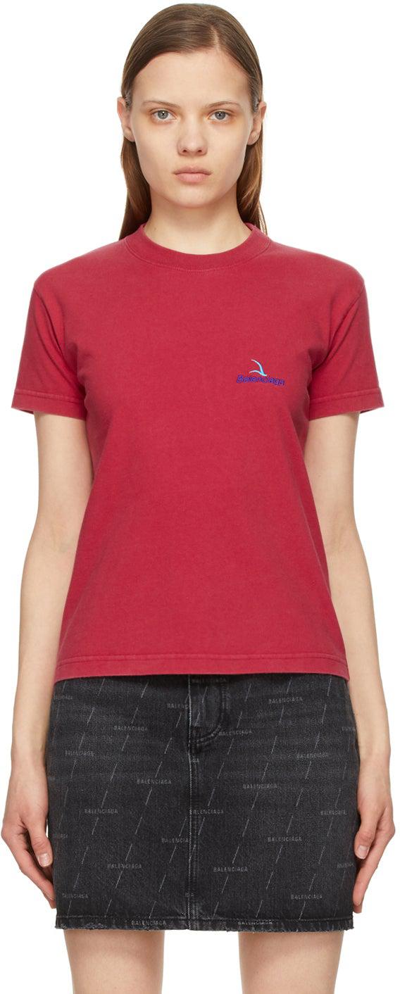 Balenciaga Red Embroidered Logo Small Fit T-Shirt