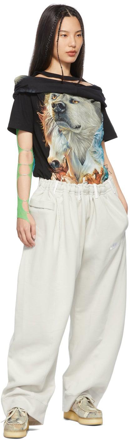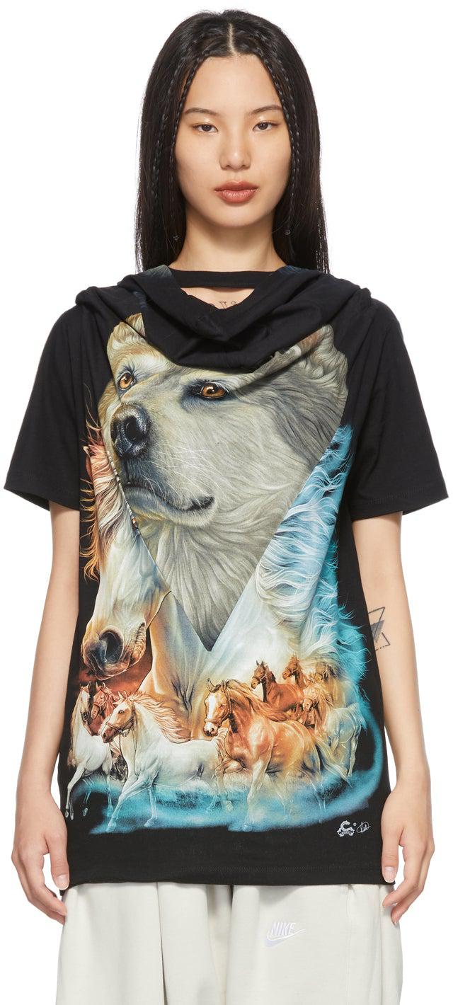 Upcycled cotton jersey T-shirt in black featuring graphic in multicolor throughout. Paneled construction. Cotton jersey scarf in black at rib knit crewneck collar. Self-tie fastening. Part of the Nº69 Lost In Contemplation collection. Supplier color: Black 100% cotton. Brand: Bless