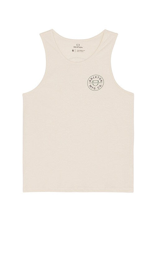 Brixton Crest Tank Top in Beige. - size L (also in M, S, XL/1X) Brixton Crest Tank Top in Beige. - size L (also in M, S, XL/1X) 60% cotton 40% polyester. Made in India. Machine wash. Front and back logo detail. Lightweight jersey fabric. BRIX-MS114. 22353-BGTGB. Inspired by music, culture and the people who surround them, Brixton Limited is the collaboration of three Southern California friends who wanted to convey their lifestyle through unique products. Created in 2004, the timeless and clean design of the Brixton collection is hard to duplicate and comes in a variety of styles that appeal to the individual in a modern yet traditional way. Shop the latest in fashion from Brixton