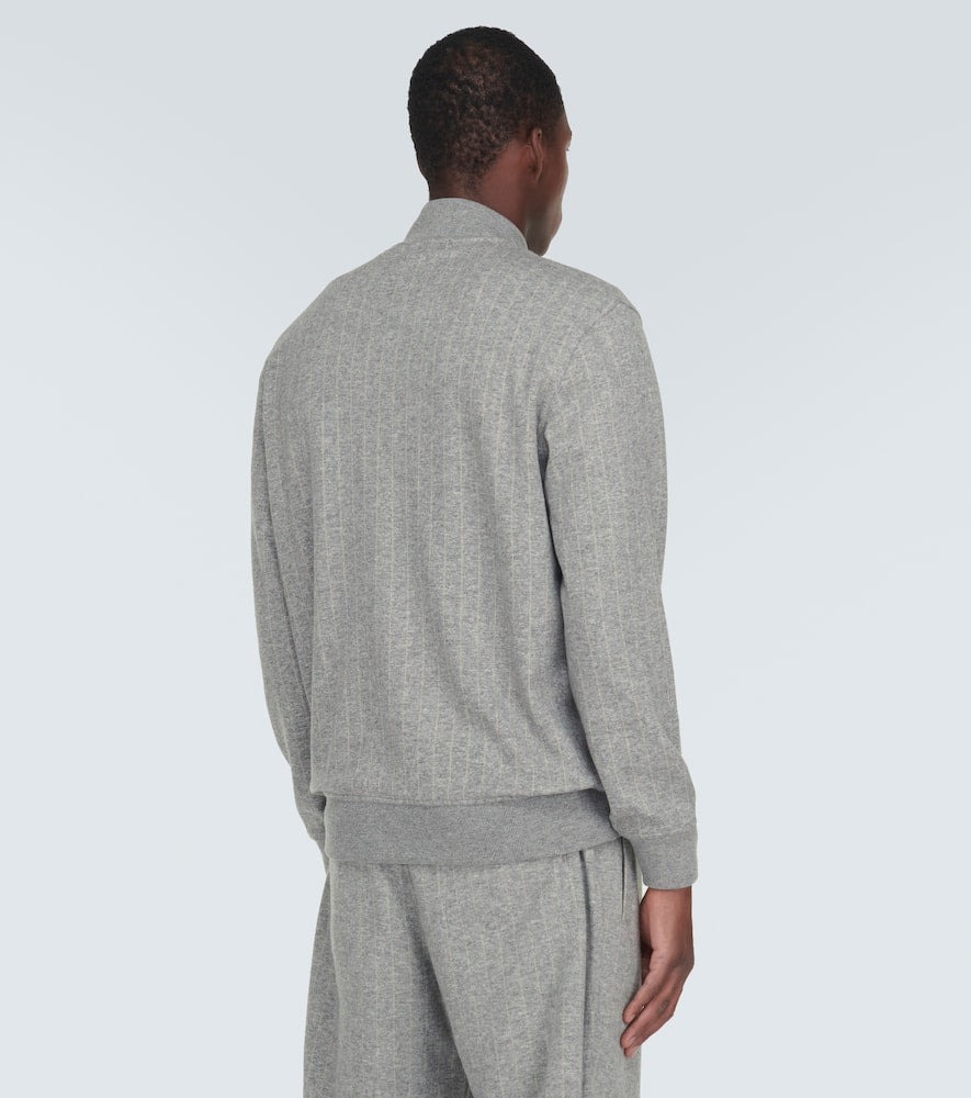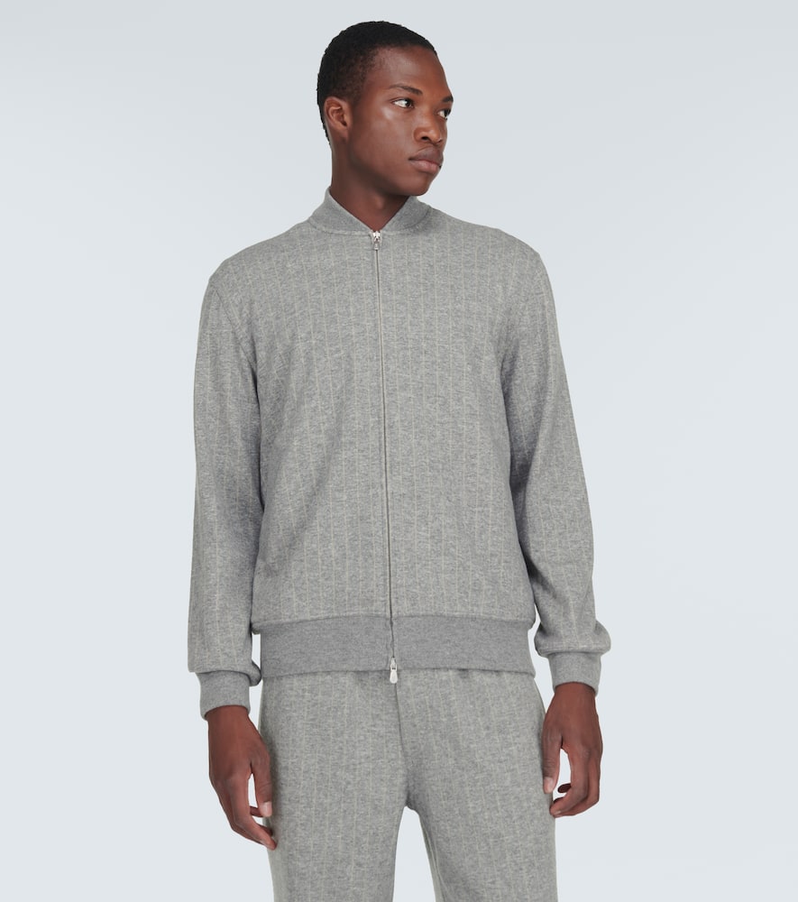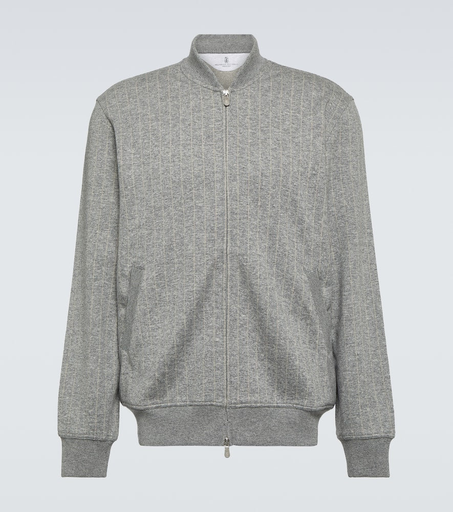 Material: 70% cashmere, 30% cotton. Care instructions: dry clean. Made in Italy. Designer color name: Grigio Perla. Closure: zipped front. Pockets: side slit pockets. Shop the latest mens Brunello Cucinelli Bomber Jackets.
