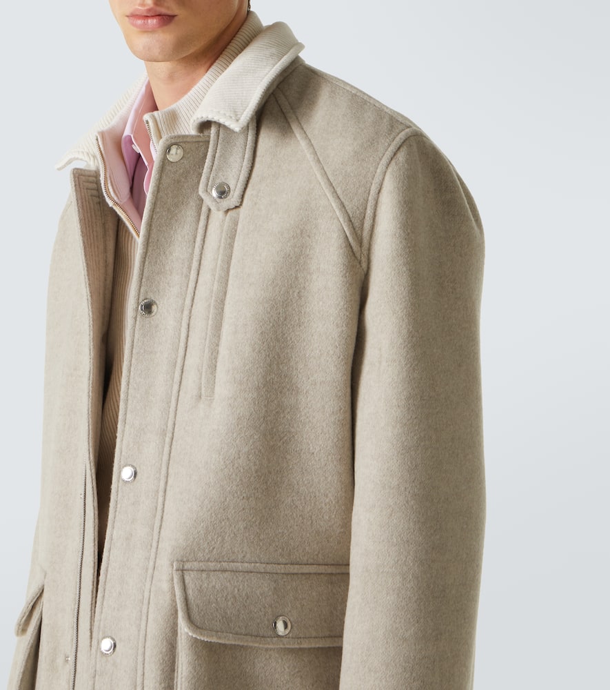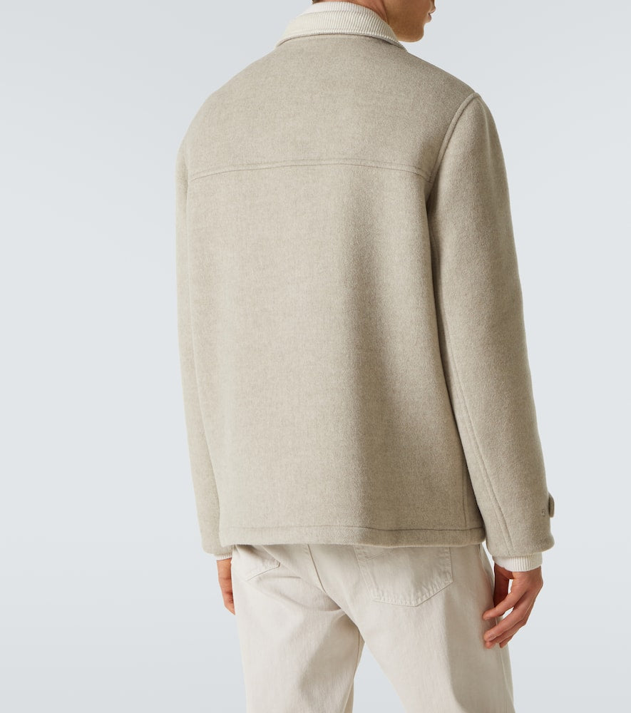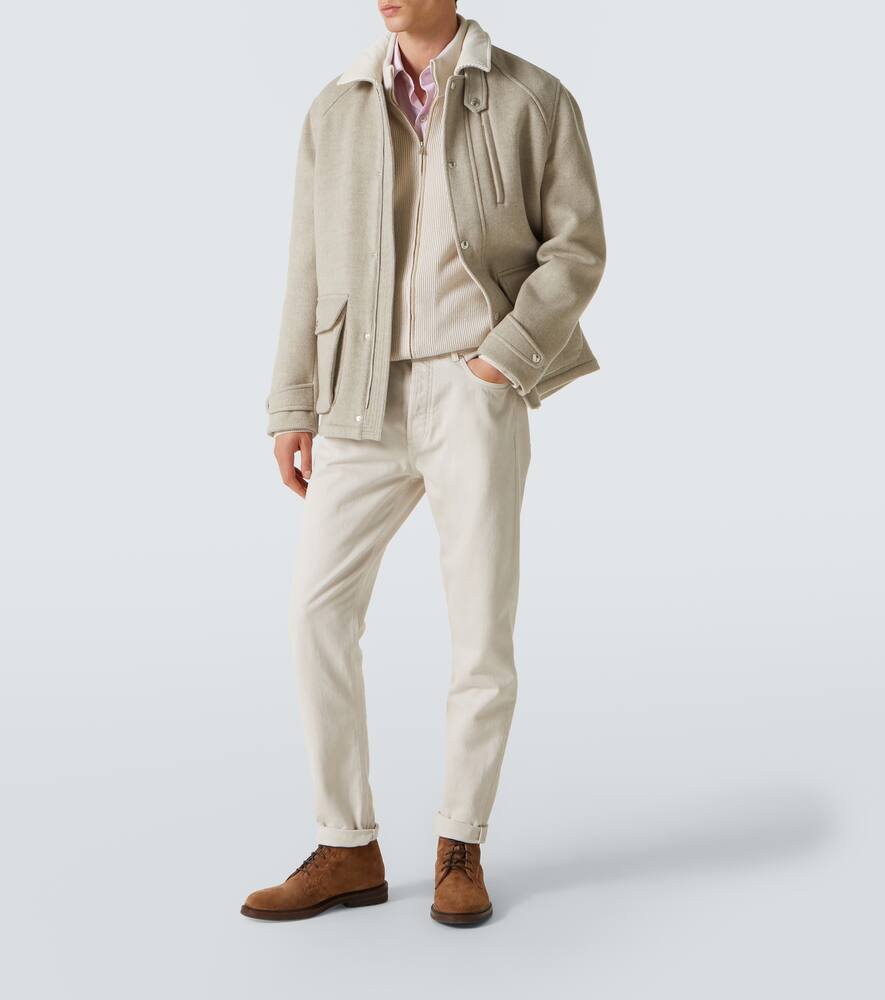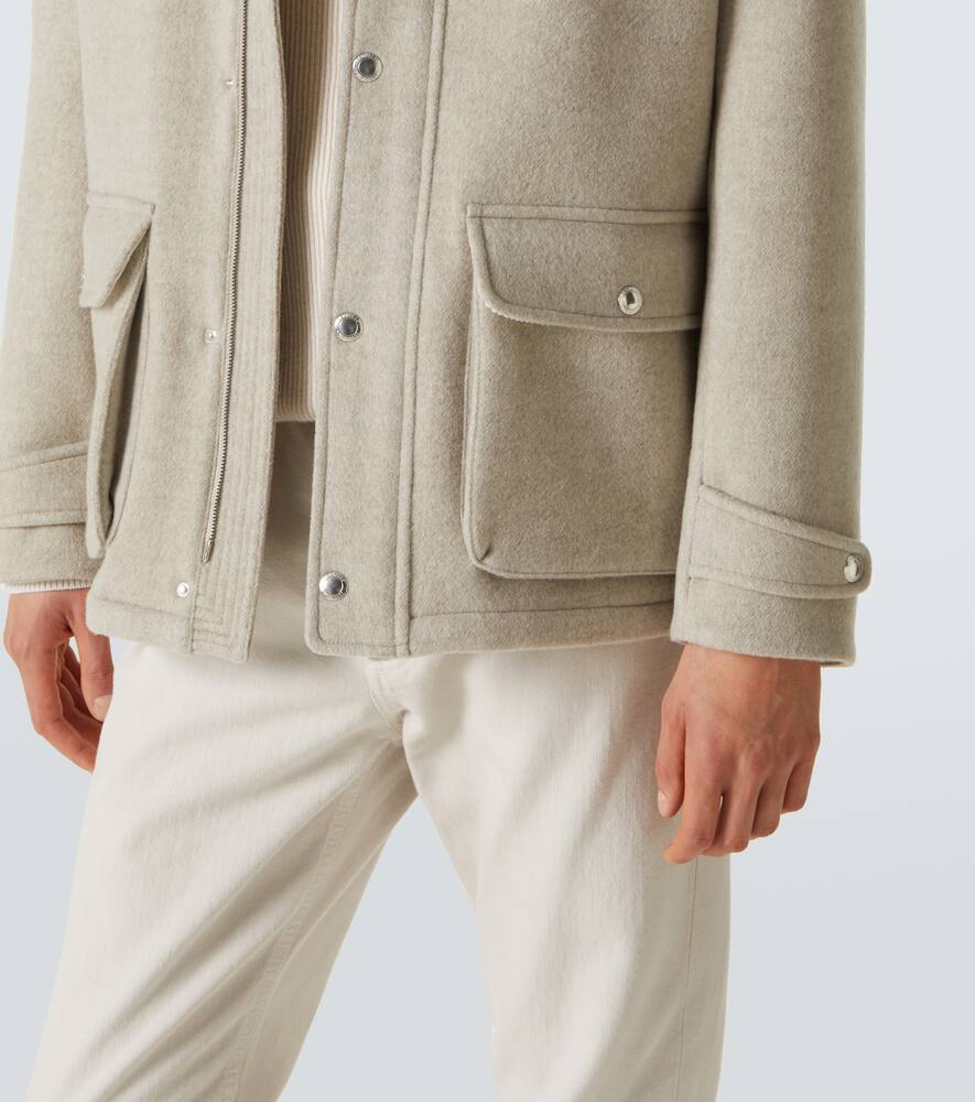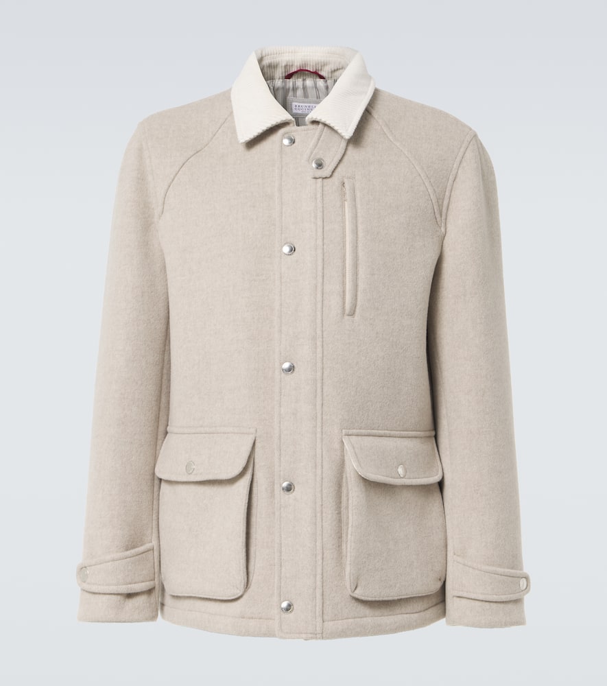 Material: 91% wool, 8% cashmere, 1% elastane. Care instructions: dry clean. Made in Italy. Designer color name: Beige Freddo+Bianco/Grigio. Comes with garment bag. Closure: two-way zipped front with snap-button fastenings. Pockets: flap pockets, utility chest pocket. Shop the latest mens Brunello Cucinelli Lightweight Jackets.