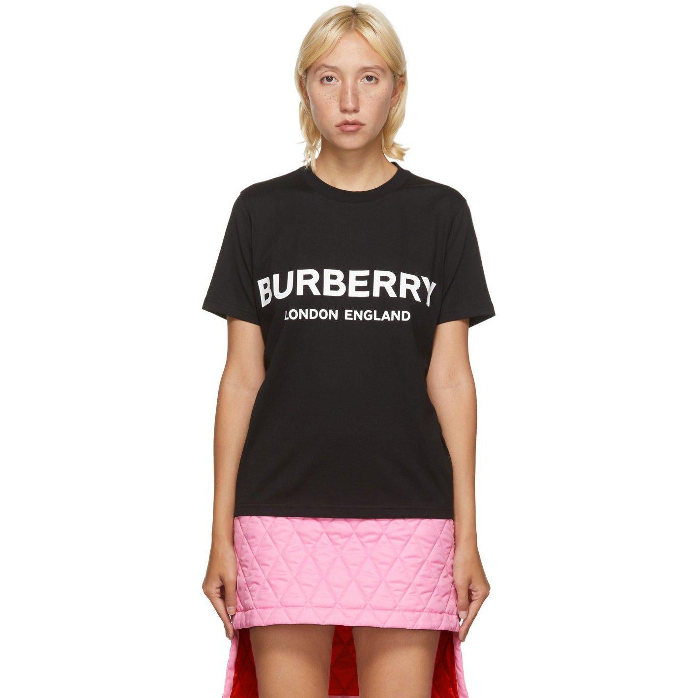 Short sleeve stretch cotton jersey T-shirt in black. Rib knit crewneck collar. Logo printed in white at front. Supplier color: Black Body: 100% cotton. Trim: 97% cotton, 3% elastane. Brand: Burberry