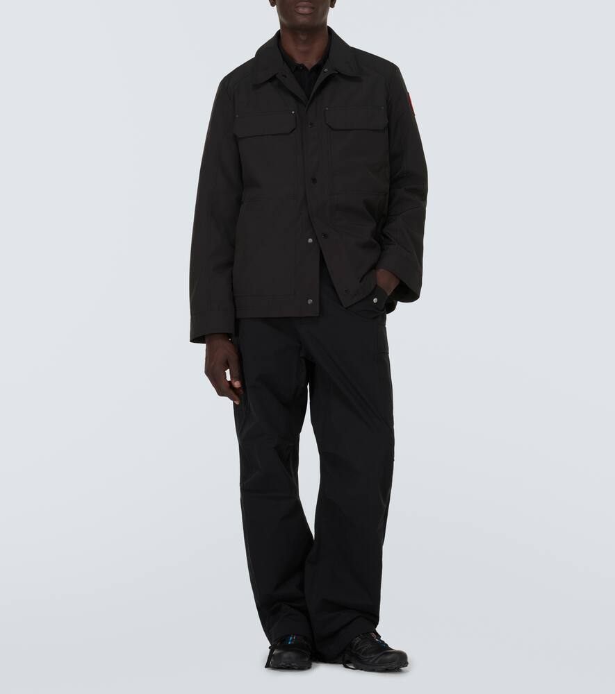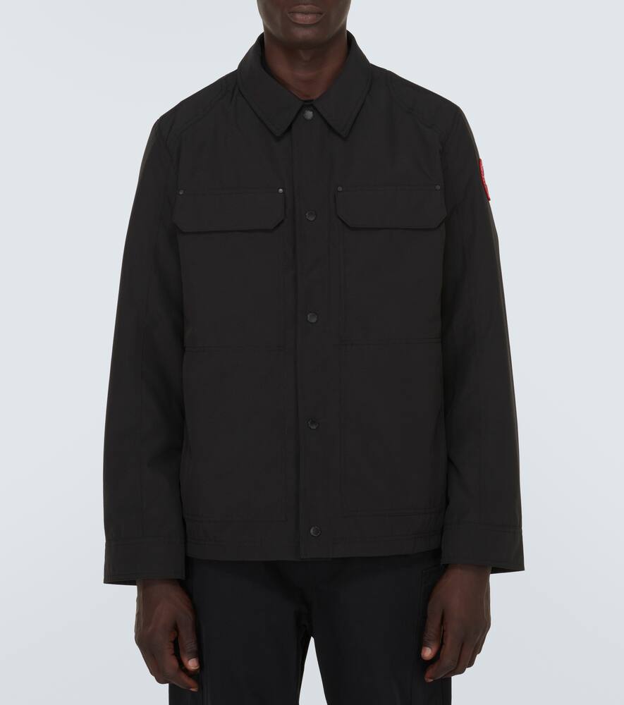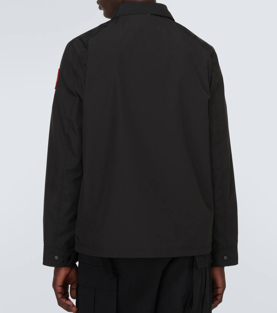 Material: 84% polyester, 16% cotton. Care instructions: machine wash at 30 degrees. Made in Canada. Designer color name: Black. Pockets: flap pockets, zipped pockets. Closure: snap-buttoned front. Lining: 100% polyester. Relaxed fit. Length: regular (hip-length). Windbreaker. Shop the latest mens Canada Goose Overshirts.