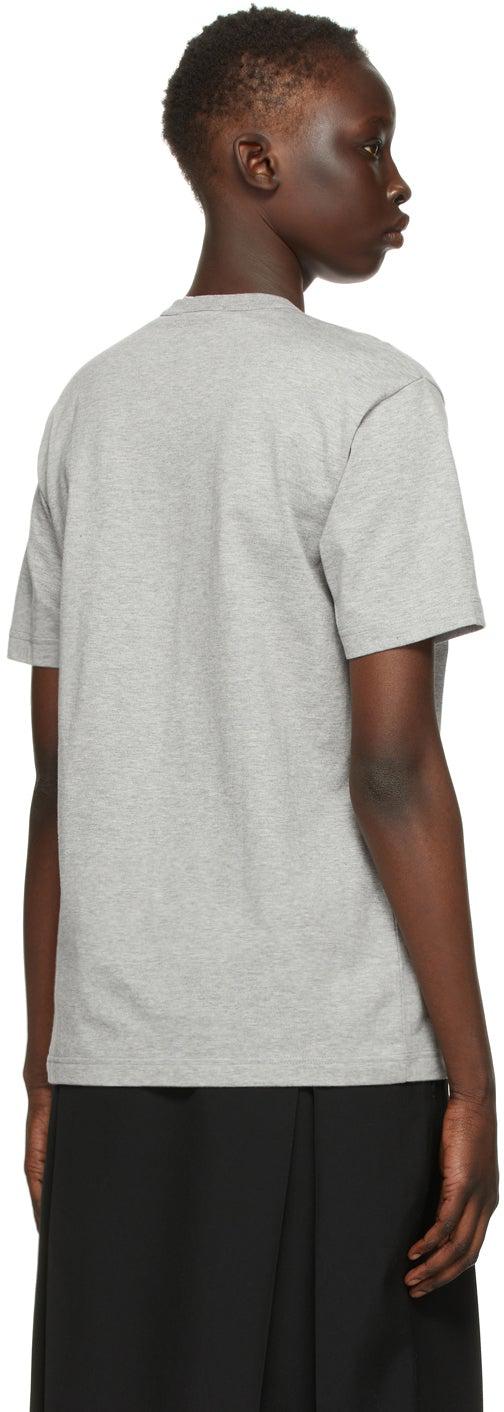 Short sleeve cotton jersey T-shirt in grey. Rib knit crewneck collar. Logo printed in white at chest. Supplier color: Top grey 100% cotton. Brand: Comme des Garçons Homme Plus