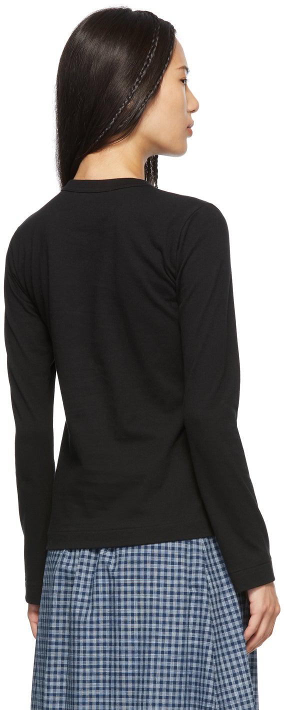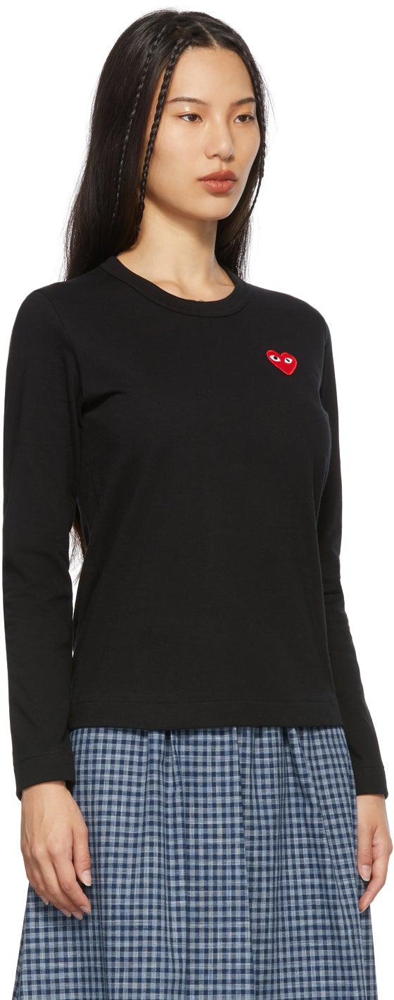 Long sleeve cotton jersey T-shirt in black. Rib knit crewneck collar. Signature embroidered graphic appliqué in red at chest. Supplier color: Black 100% cotton. Brand: Comme des Garçons Play