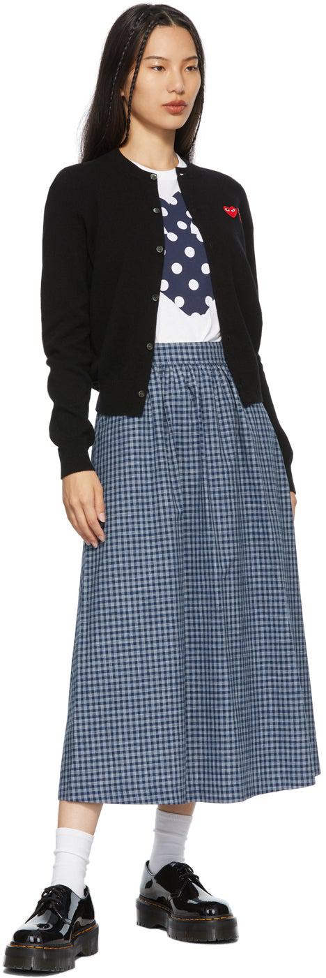 Short sleeve cotton jersey T-shirt in white. Rib knit crewneck collar. Signature embroidered graphic appliqué in red at chest. Signature graphic featuring polka dot pattern in navy and white at front. Supplier color: White 100% cotton. Brand: Comme des Garçons Play