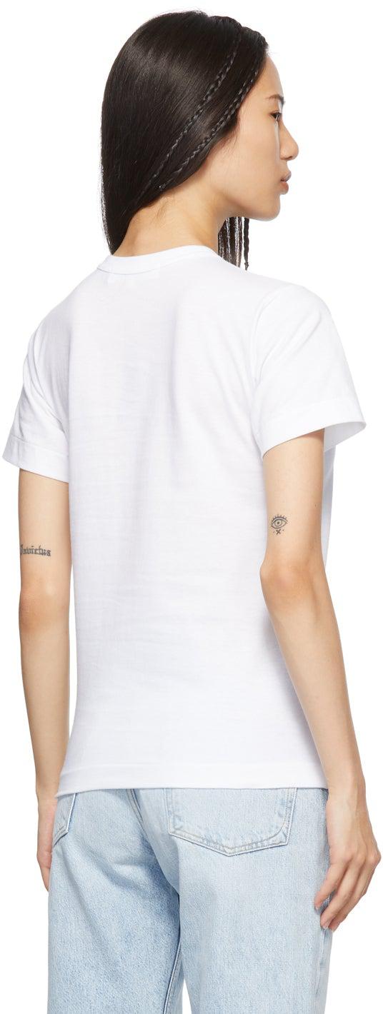 Short sleeve cotton jersey T-shirt in white. Rib knit crewneck collar. Signature embroidered graphic appliqué in red at chest. Supplier color: White 100% cotton. Brand: Comme des Garçons Play