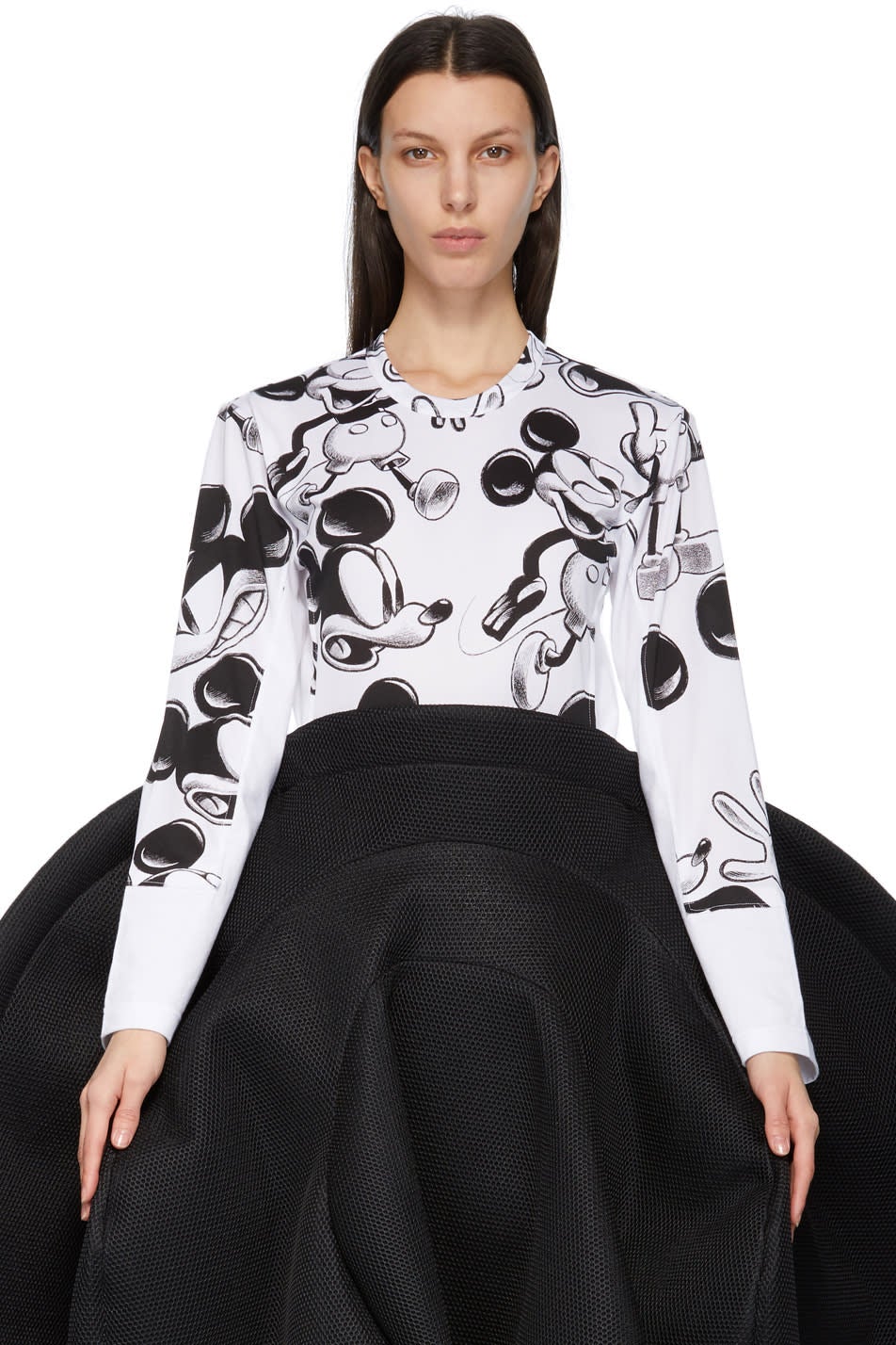 Comme des Garçons White Disney Edition Print Layered Mickey Mouse Long Sleeve T-Shirt