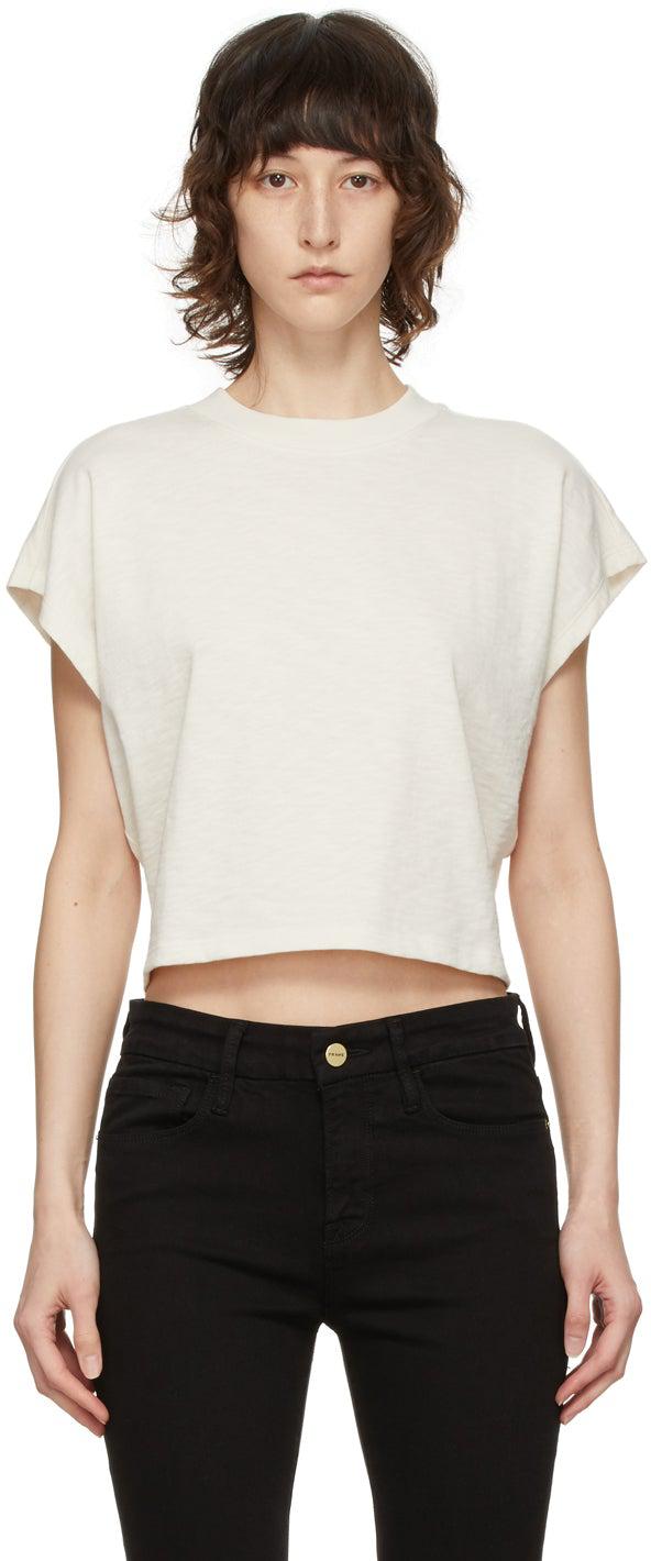Short sleeve organic pima cotton jersey T-shirt in off-white. Rib knit crewneck collar. Supplier color: Whisper white 100% pima organic cotton. Brand: Frame