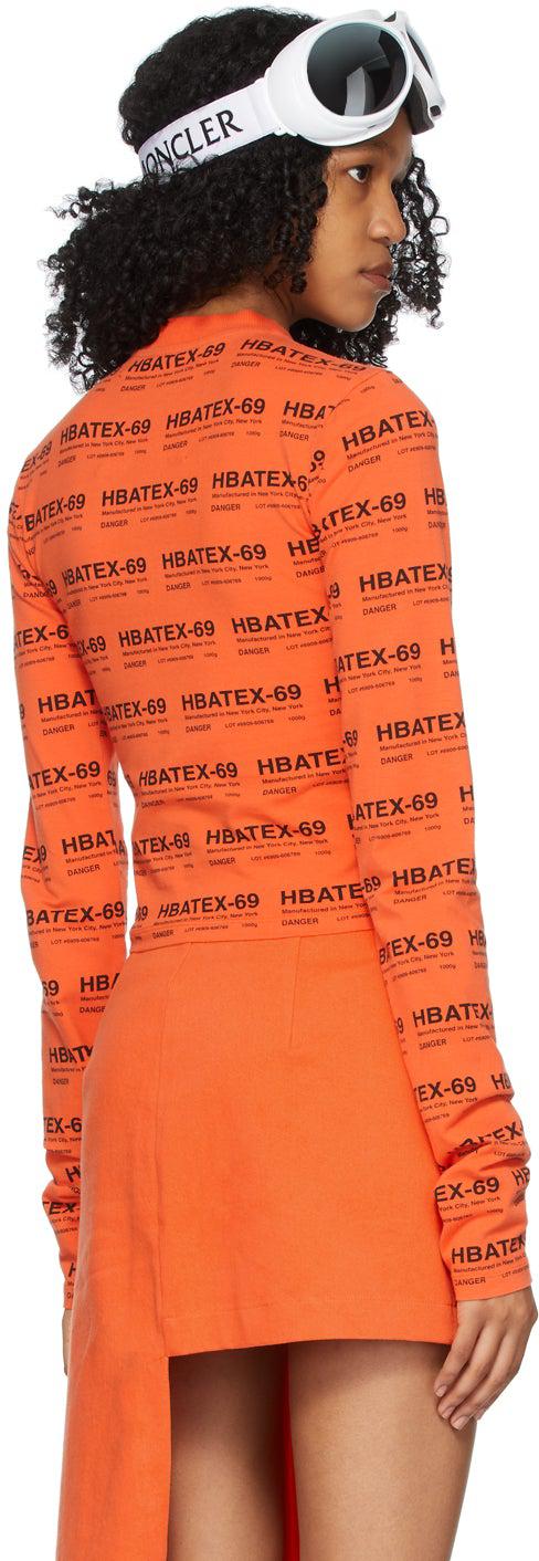 Hood by Air Orange All Over Print Crop Long Sleeve T-Shirt