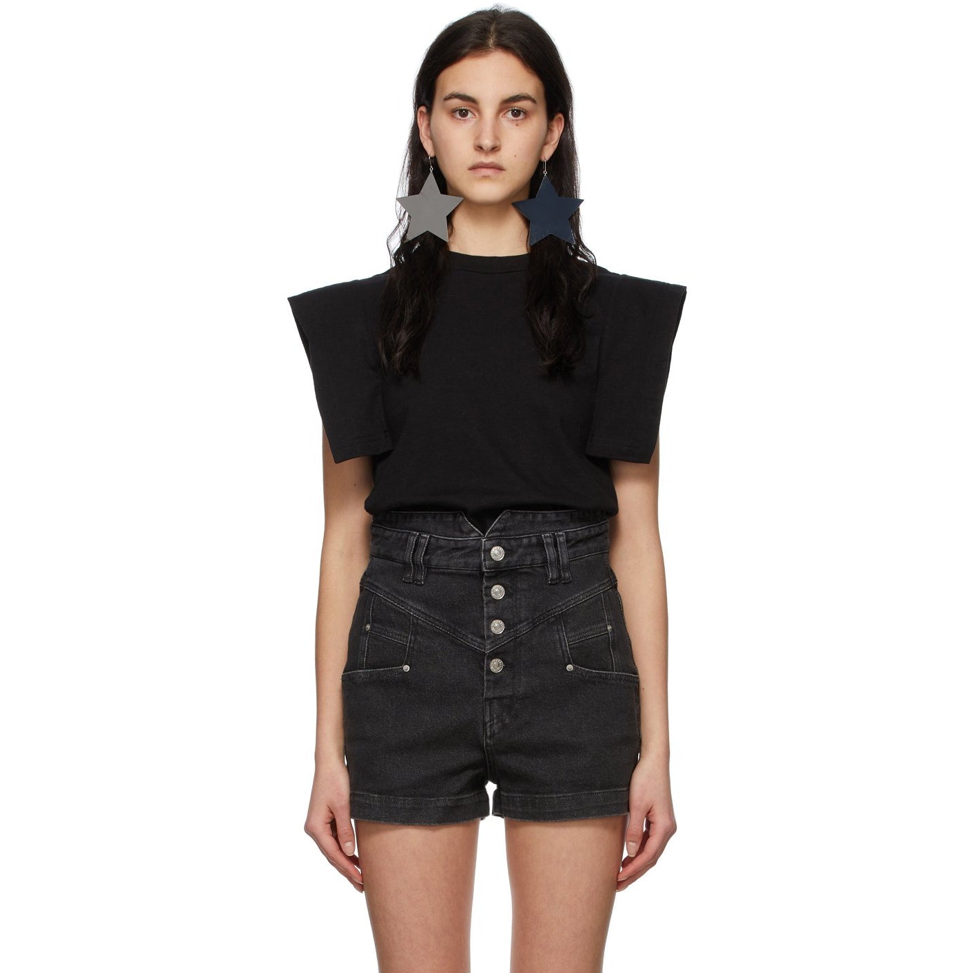 Short sleeve slub cotton jersey T-shirt in black. Rib knit crewneck collar. Padded shoulders. Vented sleeves. Supplier color: Black 100% cotton. Brand: Isabel Marant
