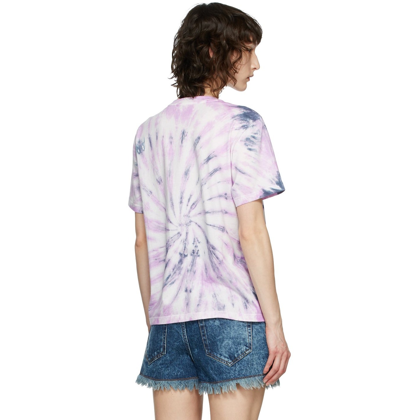 Short sleeve cotton jersey T-shirt featuring tie-dye pattern in tones of purple. Rib knit crewneck collar. Text printed in grey at chest. Each item is unique. Please note that coloration may vary. Supplier color: Purple 100% cotton. Brand: Isabel Marant Etoile