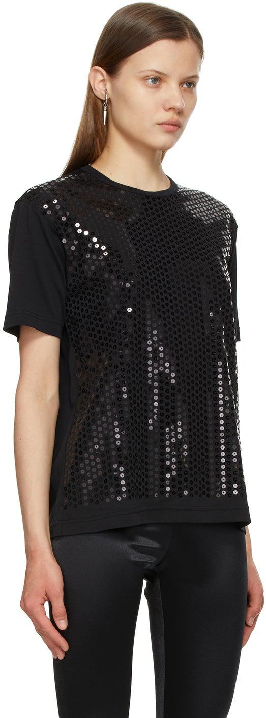 Short sleeve cotton jersey T-shirt in black featuring tonal sequinned detailing at front. Rib knit crewneck collar. Supplier color: Black/Black 100% cotton. Brand: Junya Watanabe