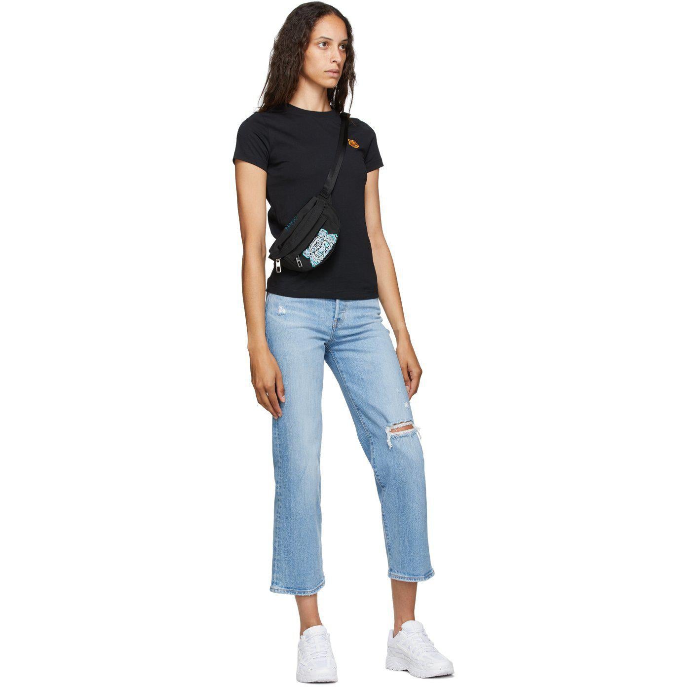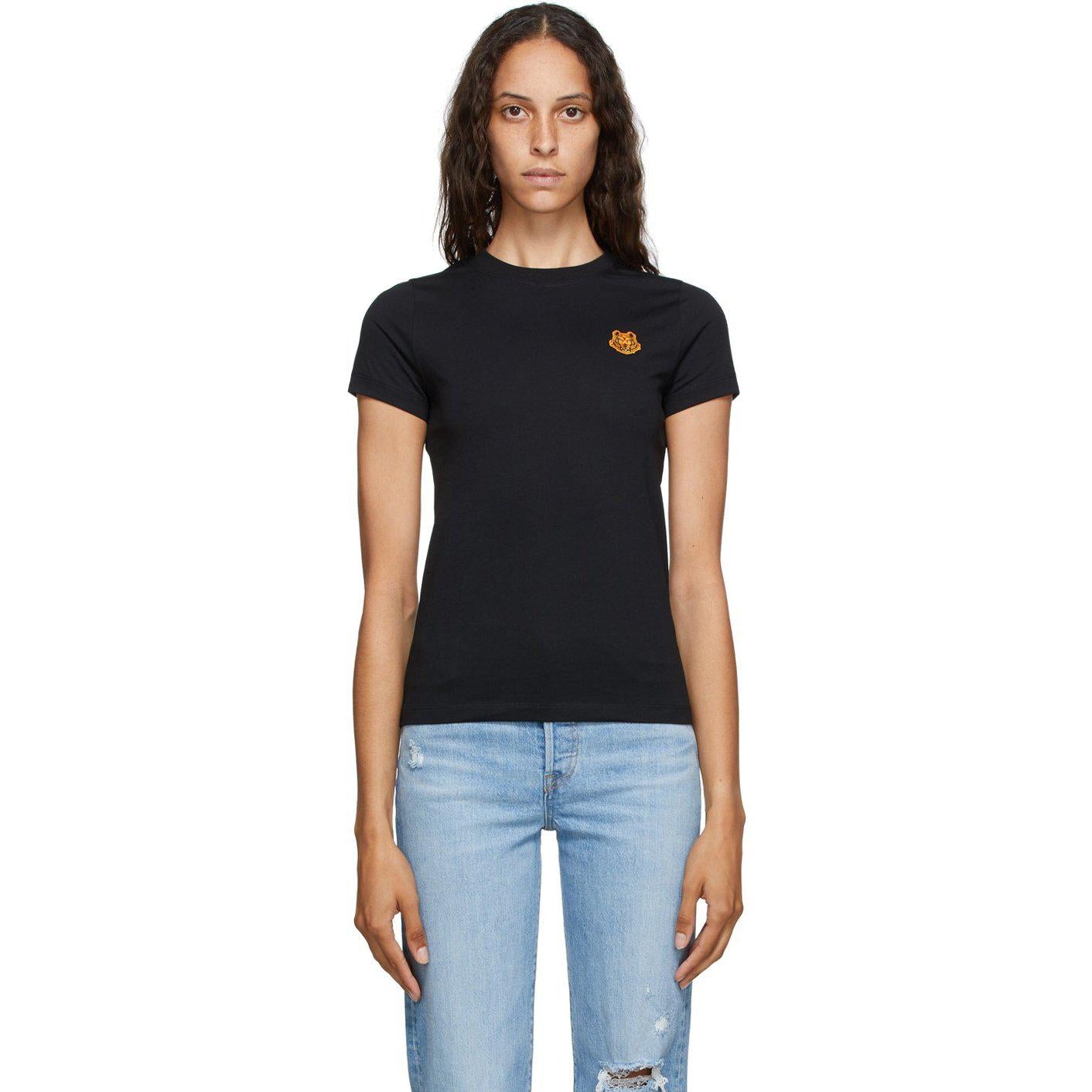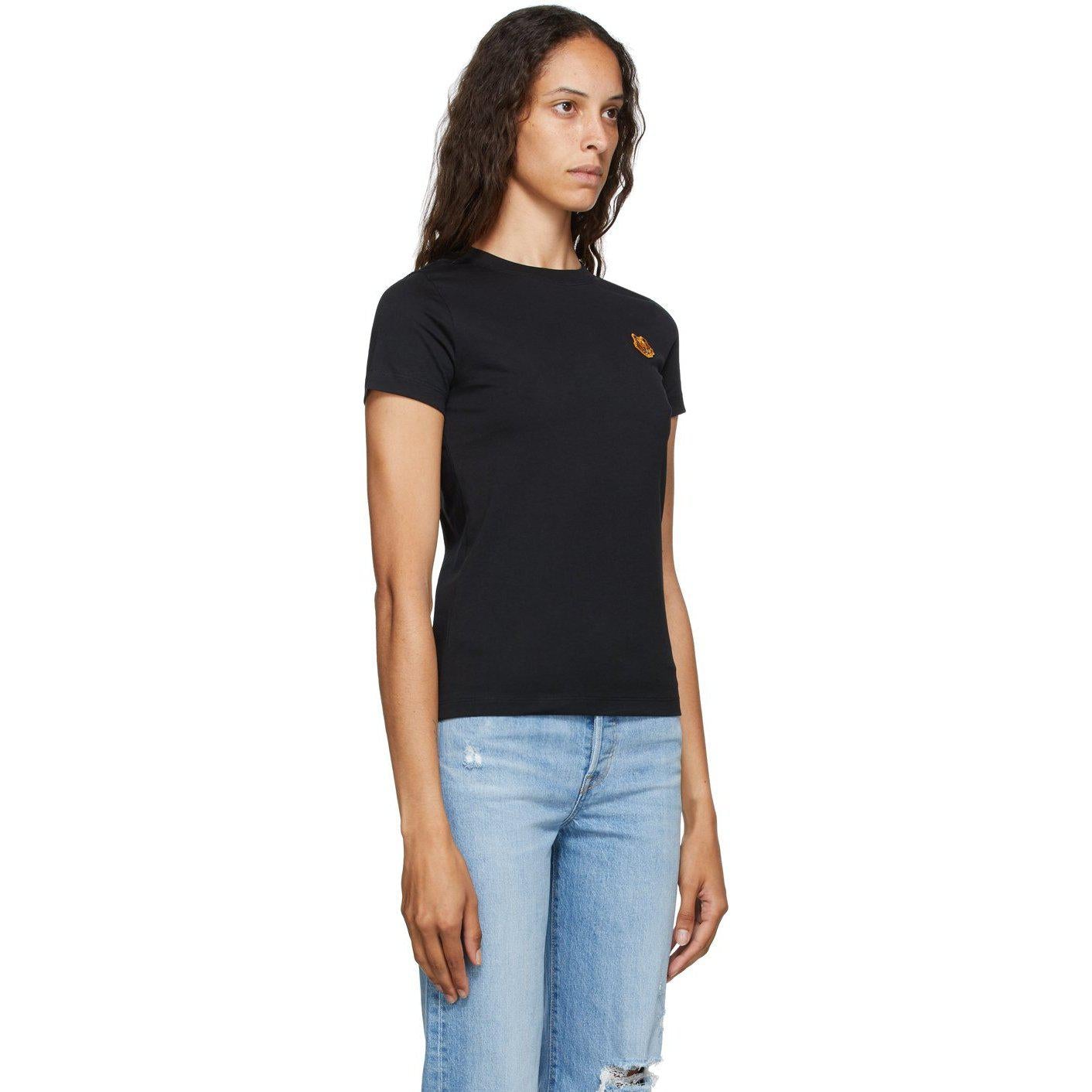 Short sleeve cotton jersey T-shirt in black. Rib knit crewneck collar. Embroidered graphic in orange and black at chest. Supplier color: Black 100% cotton. Brand: Kenzo