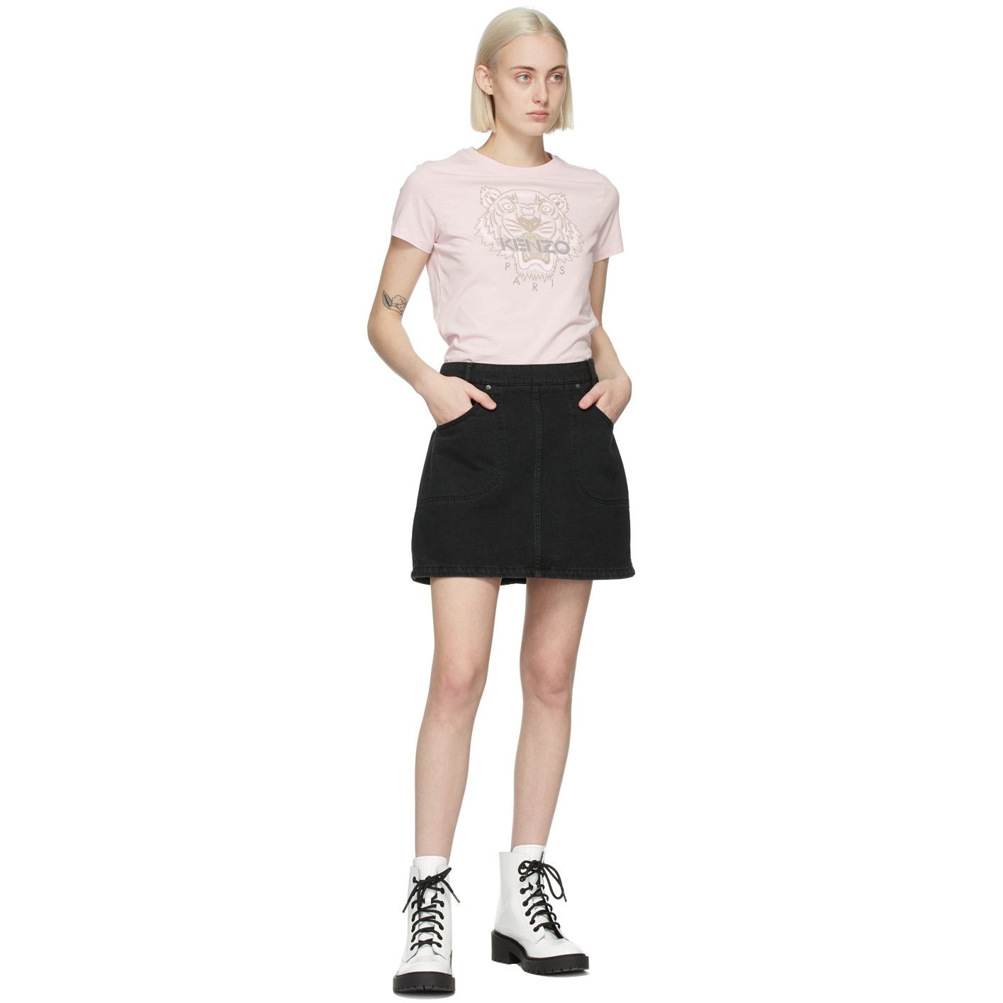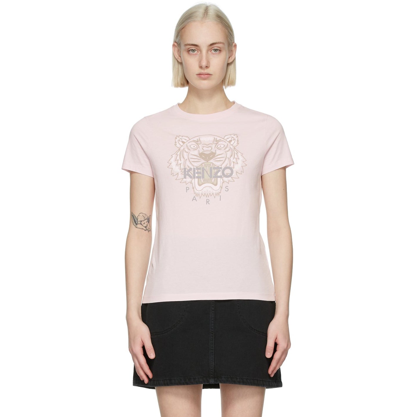 Short sleeve cotton jersey T-shirt in pink. Rib knit crewneck collar. Logo graphic printed in grey and white at front. Supplier color: Pink 100% cotton. Brand: Kenzo