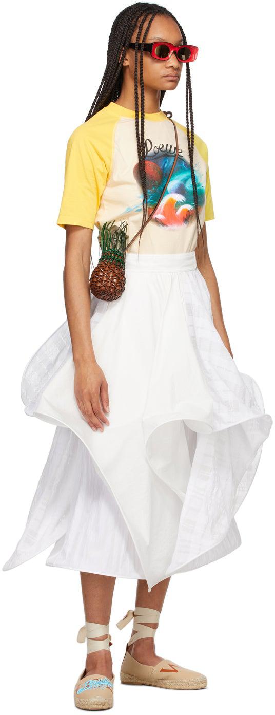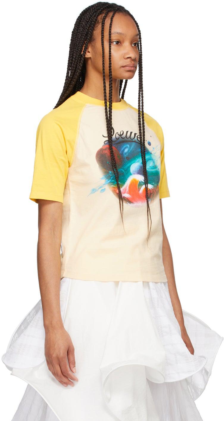 Short sleeve cotton jersey T-shirt colorblocked in off-white and yellow. Rib knit crewneck collar. Multicolor graphic and logo printed in black at front. Raglan sleeves. Part of the Loewe Paula's Ibiza capsule collection. Supplier color: Yellow 100% cotton. Brand: Loewe
