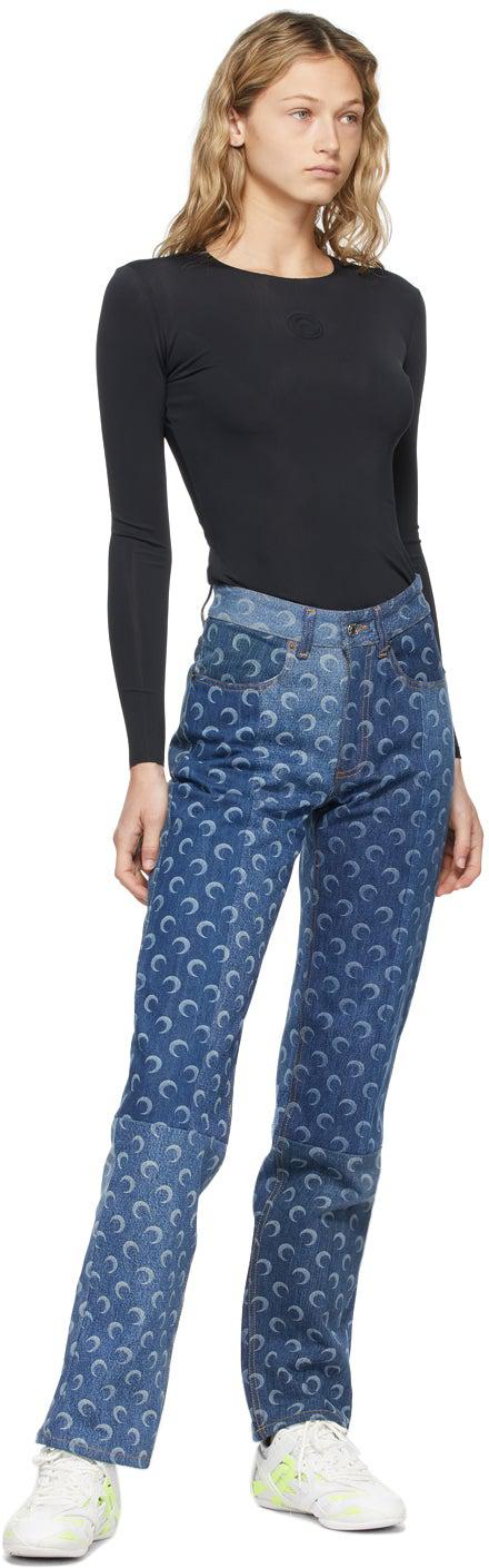 Marine Serre Black Second Skin Seasonal Moon Long Sleeve T-Shirt