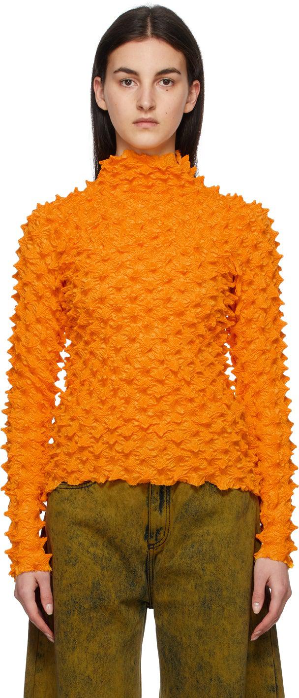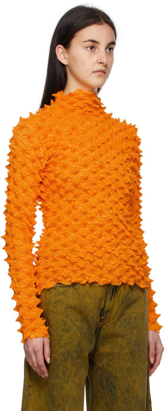 Long sleeve stretch cotton jersey T-shirt in yellow. Structured spike pattern throughout. Crewneck collar. Supplier color: Yellow 100% cotton. Brand: Marques Almeida