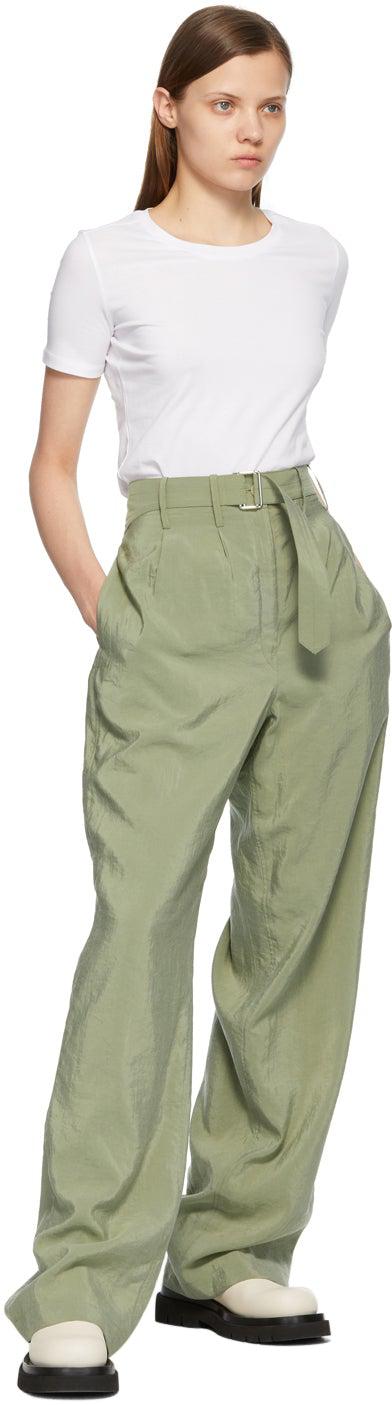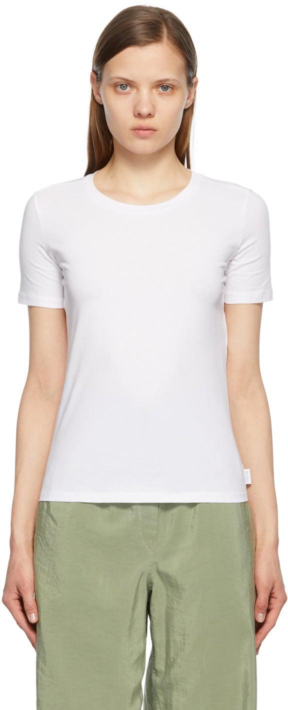 Short sleeve stretch cotton jersey T-shirt in white. Rib knit crewneck collar. Tonal logo flag at side-seam. Supplier color: White 94% cotton, 6% elastane. Brand: Max Mara Leisure