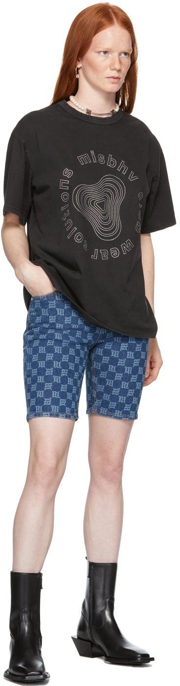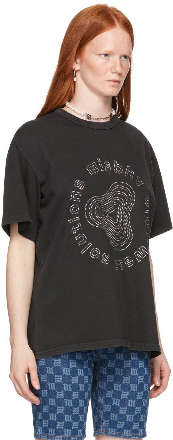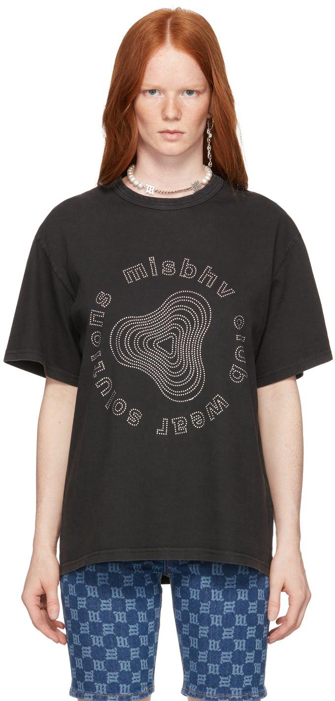 Short sleeve cotton jersey T-shirt in black. Fading throughout. Rib knit crewneck collar. Crystal-cut logo appliqué at front. Supplier color: Vintage black 100% cotton. Brand: MISBHV