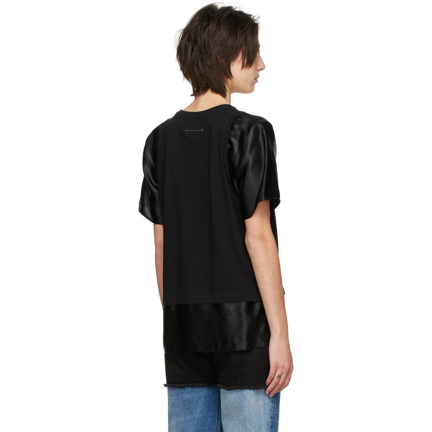 Short sleeve paneled cotton jersey and viscose satin T-shirt in black. Rib knit crewneck collar and armscyes. Tonal satin trim at cuffs and hem. Signature white stitching at back collar. Supplier color: Black Body: 100% cotton. Trim: 100% viscose. Brand: MM6 Maison Margiela