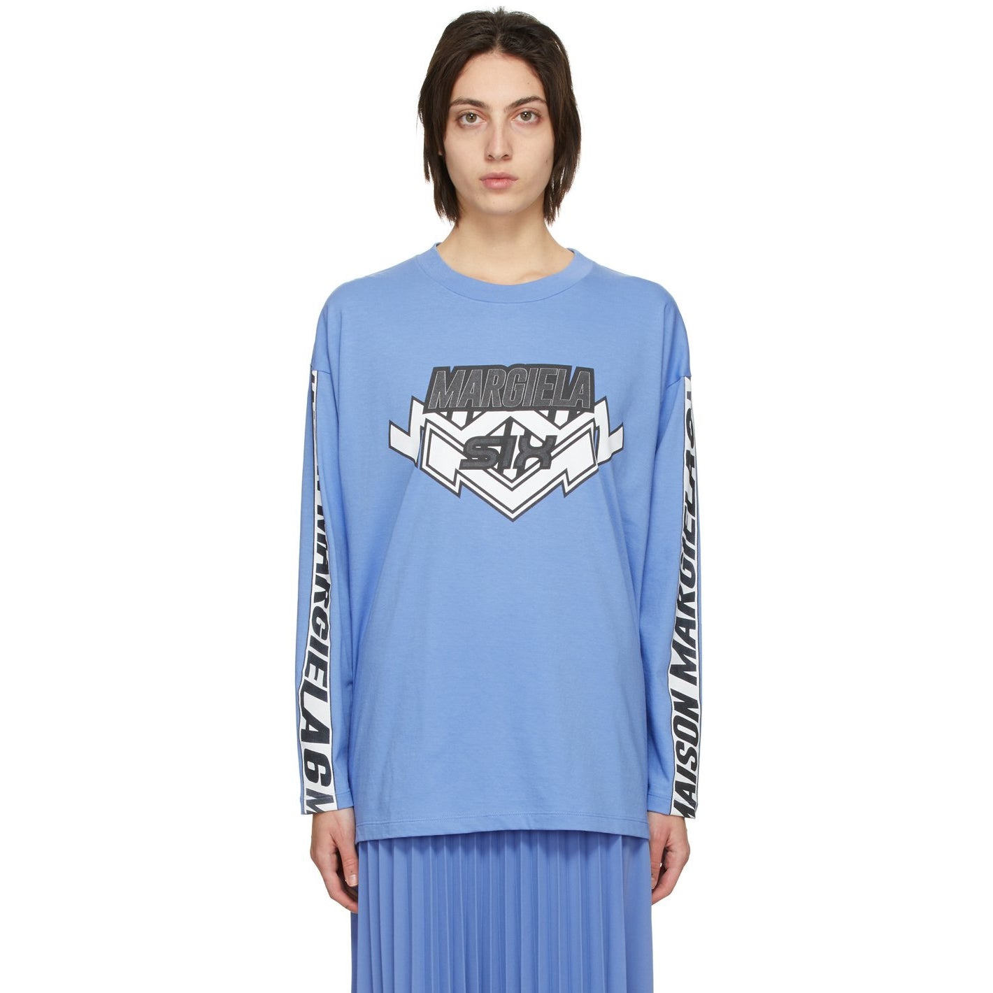 MM6 Maison Margiela Blue Motocross Long Sleeve T-Shirt