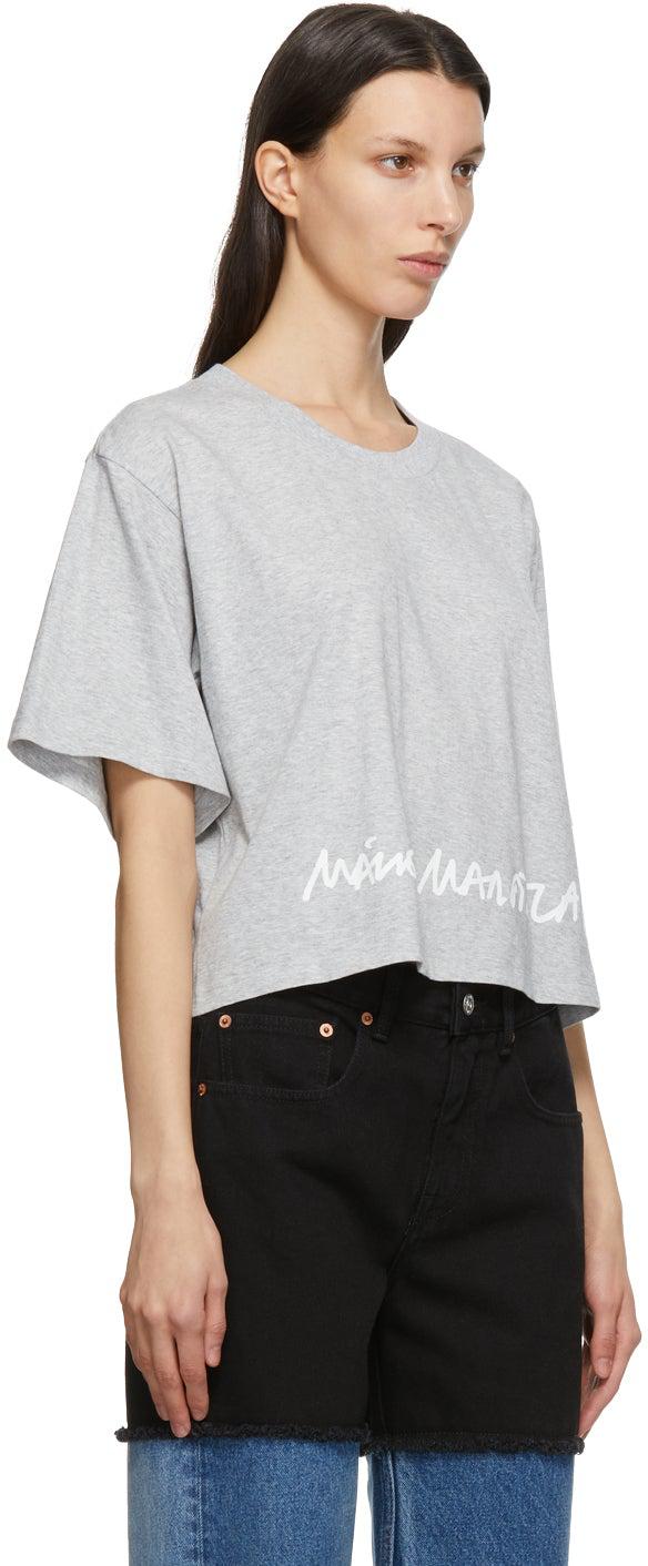 MM6 Maison Margiela Grey Logo Cropped T-Shirt