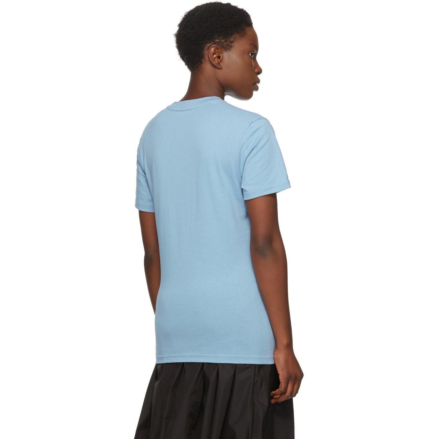Short sleeve cotton jersey crewneck T-shirt in blue. Rib knit at collar. Tonal embroidered logo patch at chest. Supplier color: Blue 100% cotton. Brand: Moncler