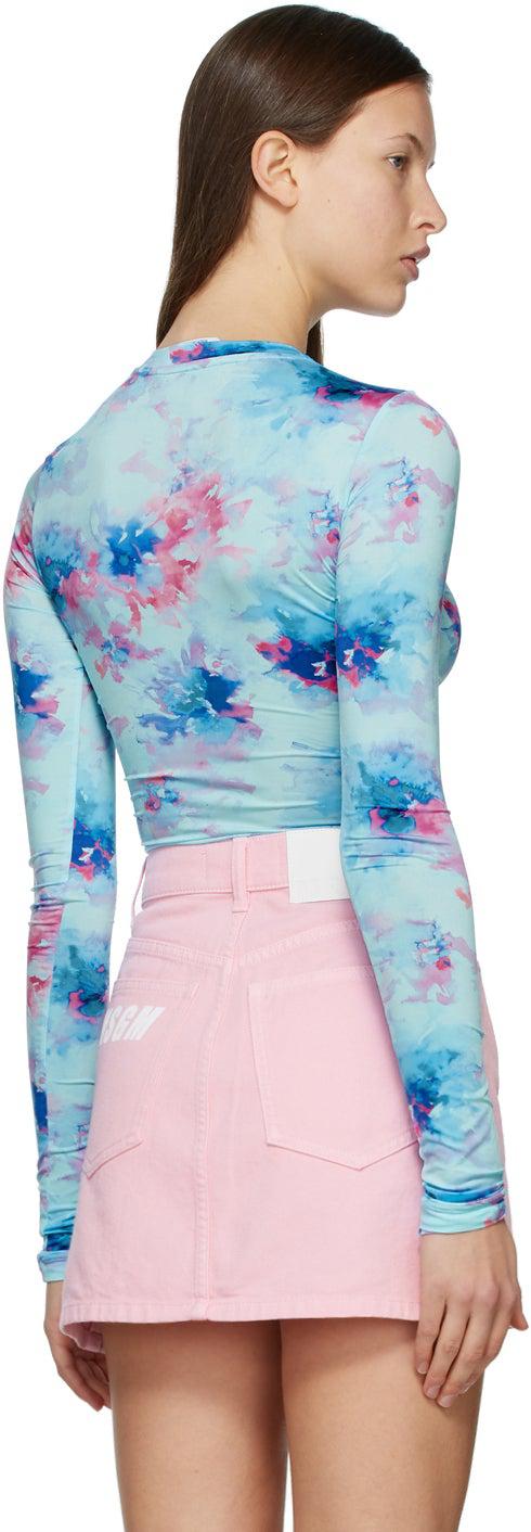 MSGM Blue Tie-Dye Long Sleeve T-Shirt
