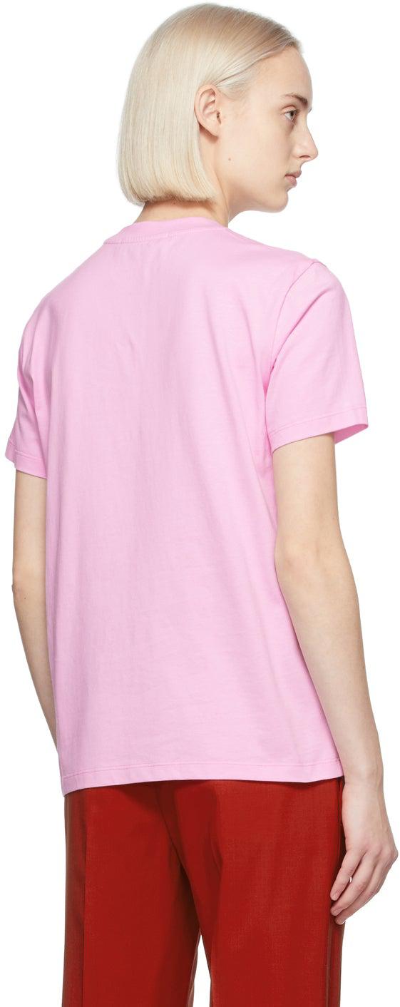 Short sleeve cotton jersey T-shirt in pink. Rib knit crewneck collar. Bonded logo in red at chest. Supplier color: Pink 100% cotton. Brand: MSGM