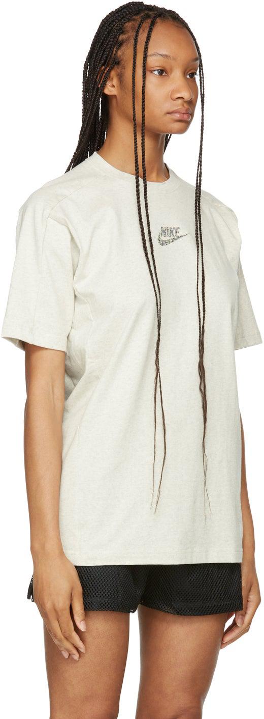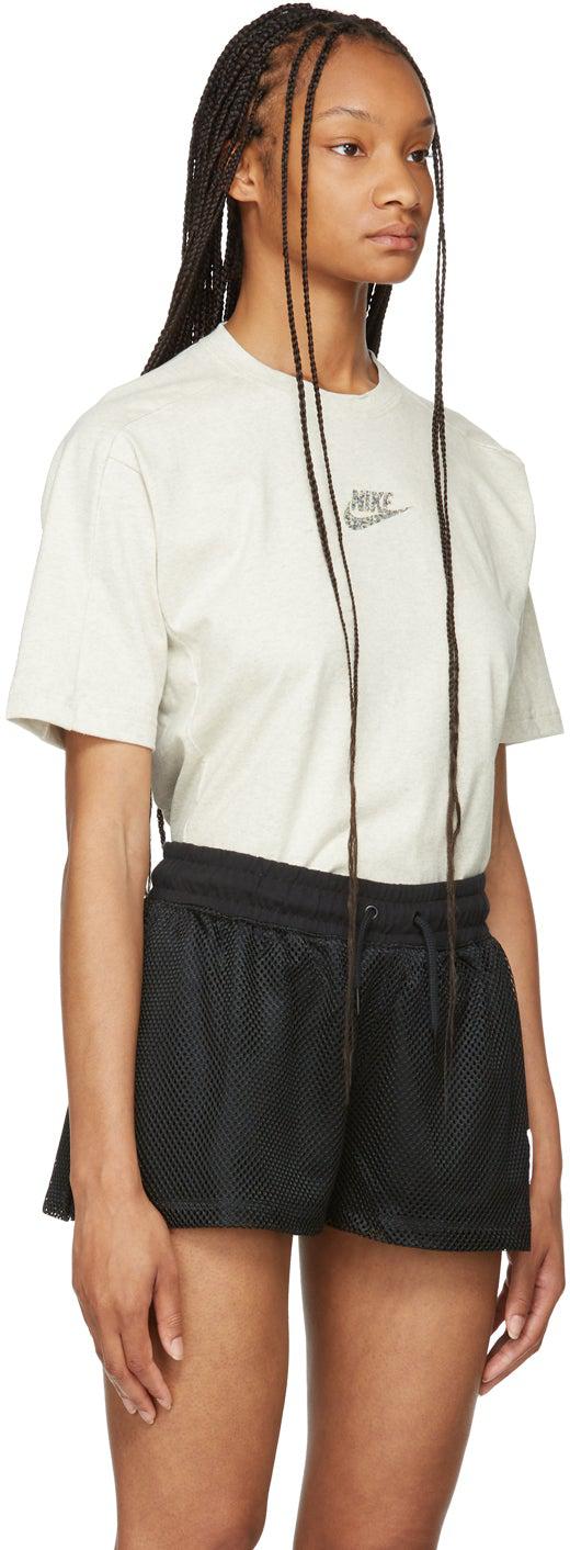Short sleeve cotton jersey T-shirt in off-white. Rib knit crewneck collar, cuffs and hem. Embroidered eyelets at armscyes. Multicolor logo bonded at chest and back collar. Supplier color: White/Heather 97% cotton, 3% polyester. Brand: Nike
